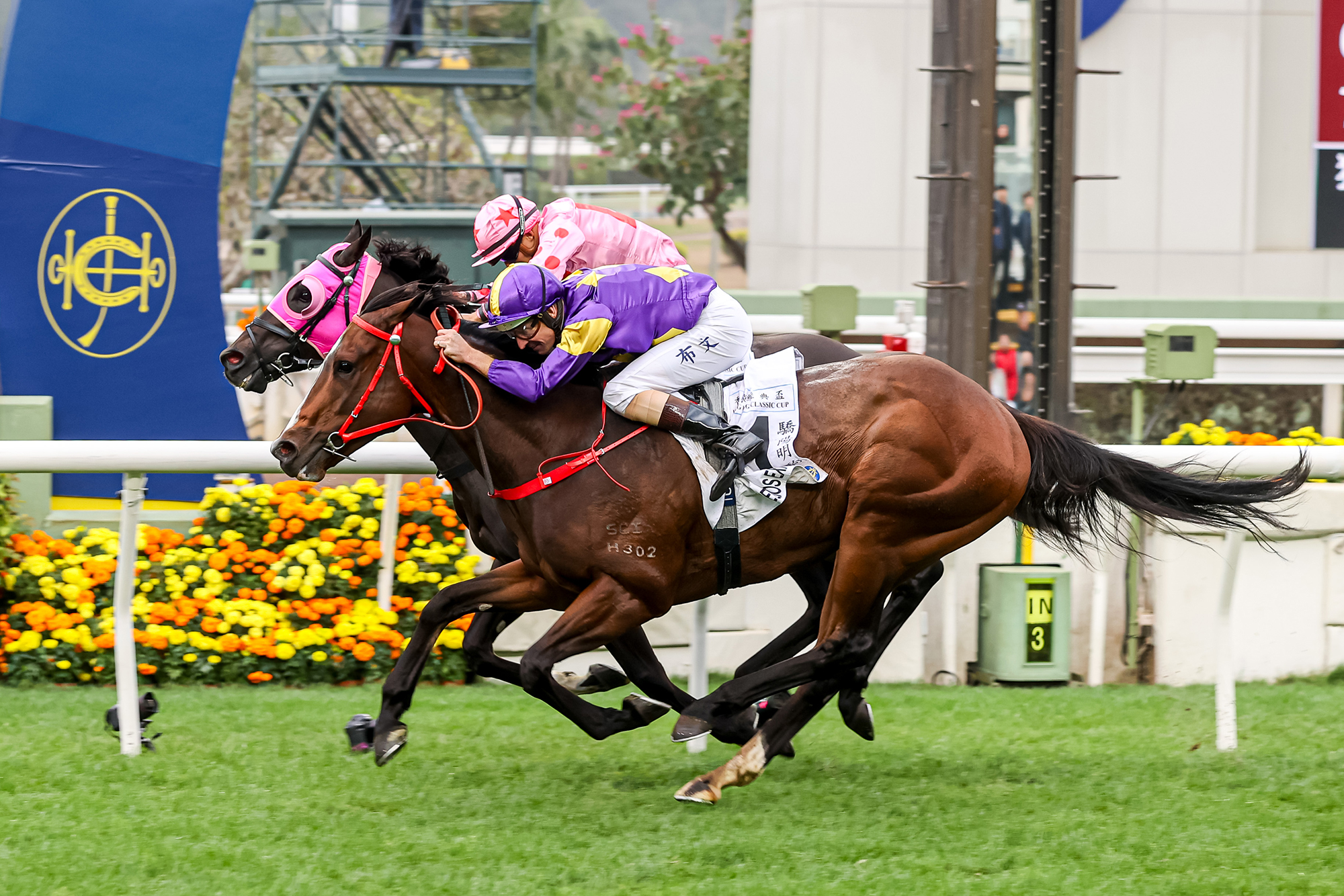 由蔡約翰訓練的「驕陽明駒」(1號),在布文策騎下勝出今日(3月3日星期日)在沙田馬場舉行的四歲馬經典賽事系列次關香港經典盃(1800米)。