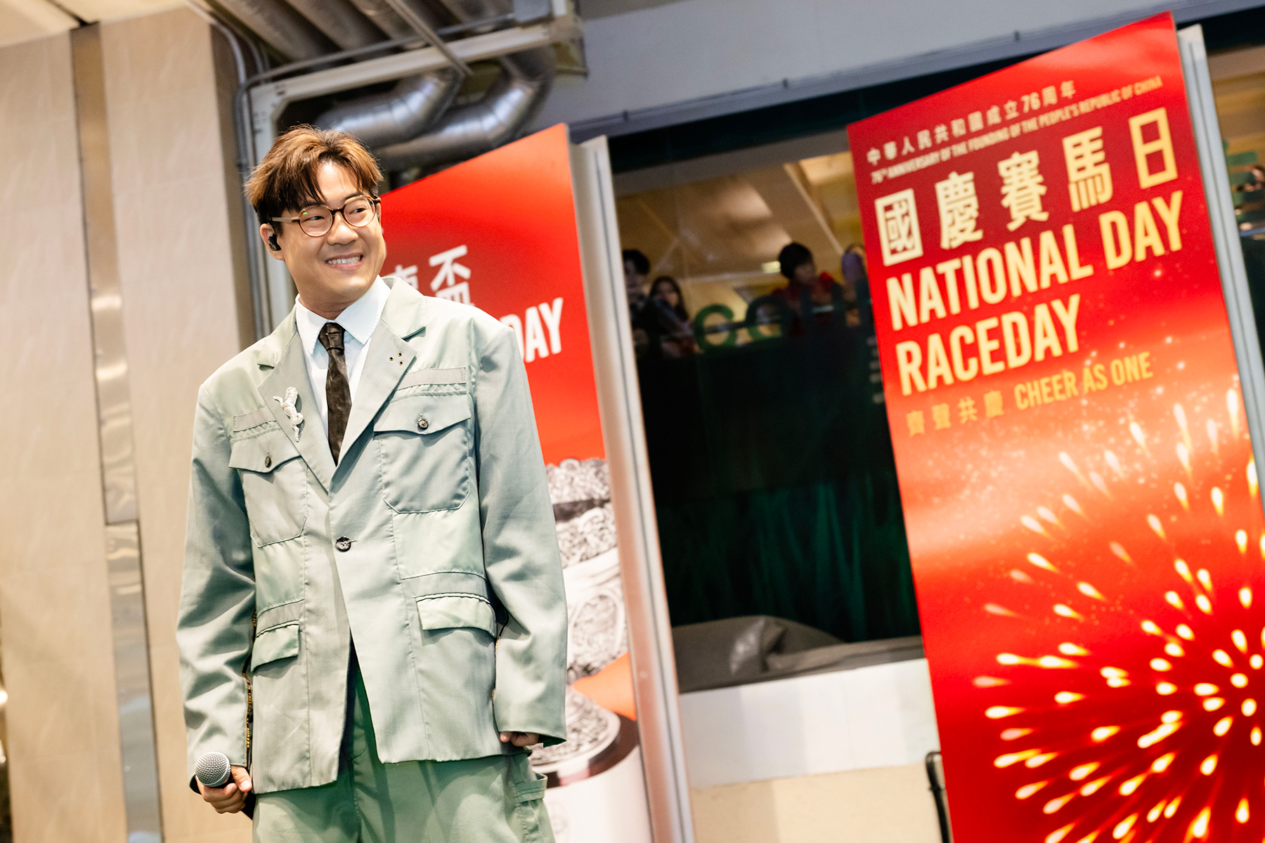 中國著名男高音歌唱家張英席再次亮相國慶賽馬日,獻唱經典名曲並領唱國歌。