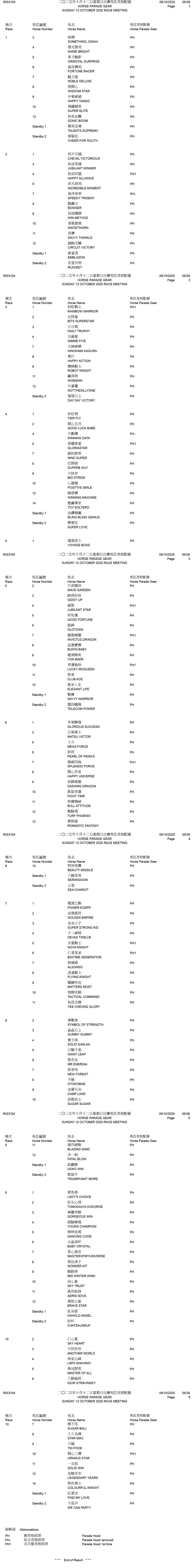2025年10月4日星期六賽事 -上次出賽後曾置放在從化的出賽馬匹