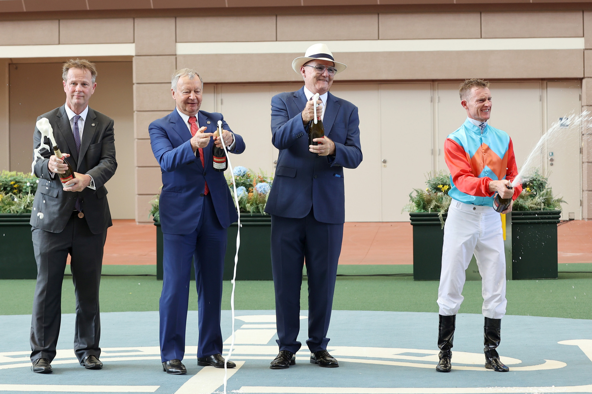 2024/25年度香港馬王「嘉應高昇」於10月18日星期六在澳洲蘭域馬場勇奪一級賽珠穆朗瑪峰錦標(1200米),成為歷來首匹能勝出這項全球最高獎金草地大賽的海外賽駒,締創歷史。馬會今日(10月19日星期日)在沙田馬場亮相圈為「嘉應高昇」舉行慶祝儀式。