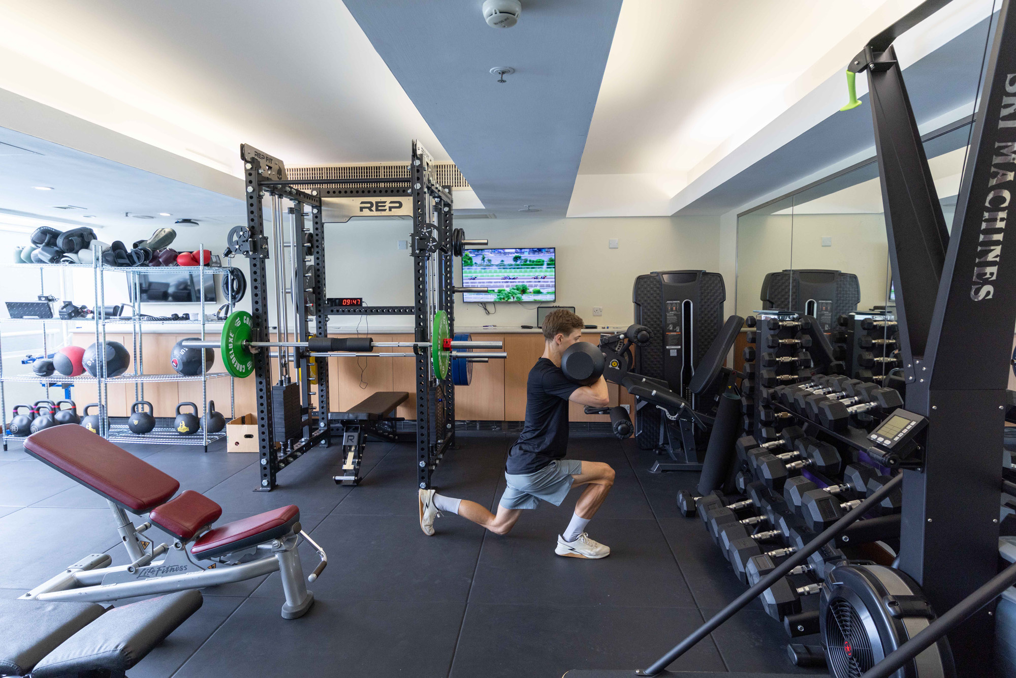 馬會賽馬日營運、跑道及賽馬設施部主管夏俊思則介紹了升級後的騎師訓練設施,當中健身及物理治療區現時的配備更臻完善,包括設有可助騎師恢復體力及提升表現的冷水池。全職個人健身教練及物理治療師會常駐現場,為騎師提供體能訓練、傷患預防及心理健康方面的全面支援,進一步體現馬會對運動員福祉的承諾。