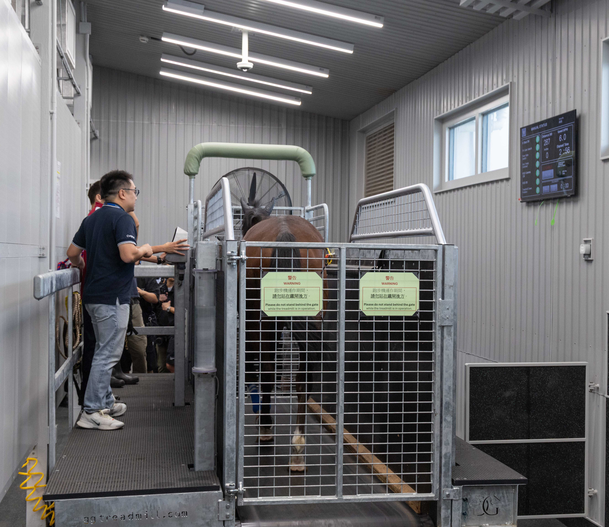 此外,馬會兩地馬房營運部主管鄭奇龍介紹了馬房的優化設施,包括重新設計馬房佈局,以提升馬匹舒適度及活動空間、增設有蓋步行區以提供全天候保護,以及裝置新跑步機以配合適當訓練及復康治療。這些升級設施進一步提升了香港賽駒的料理標準,體現馬會一直致力維持馬匹料理的世界級水平。