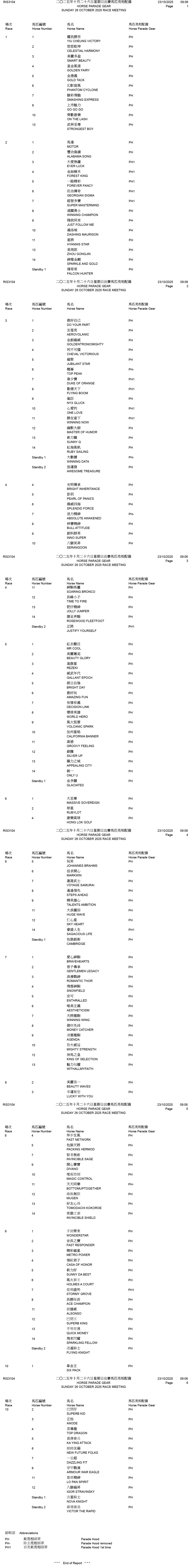 2025年10月26日星期日 - 出賽馬匹亮相配備