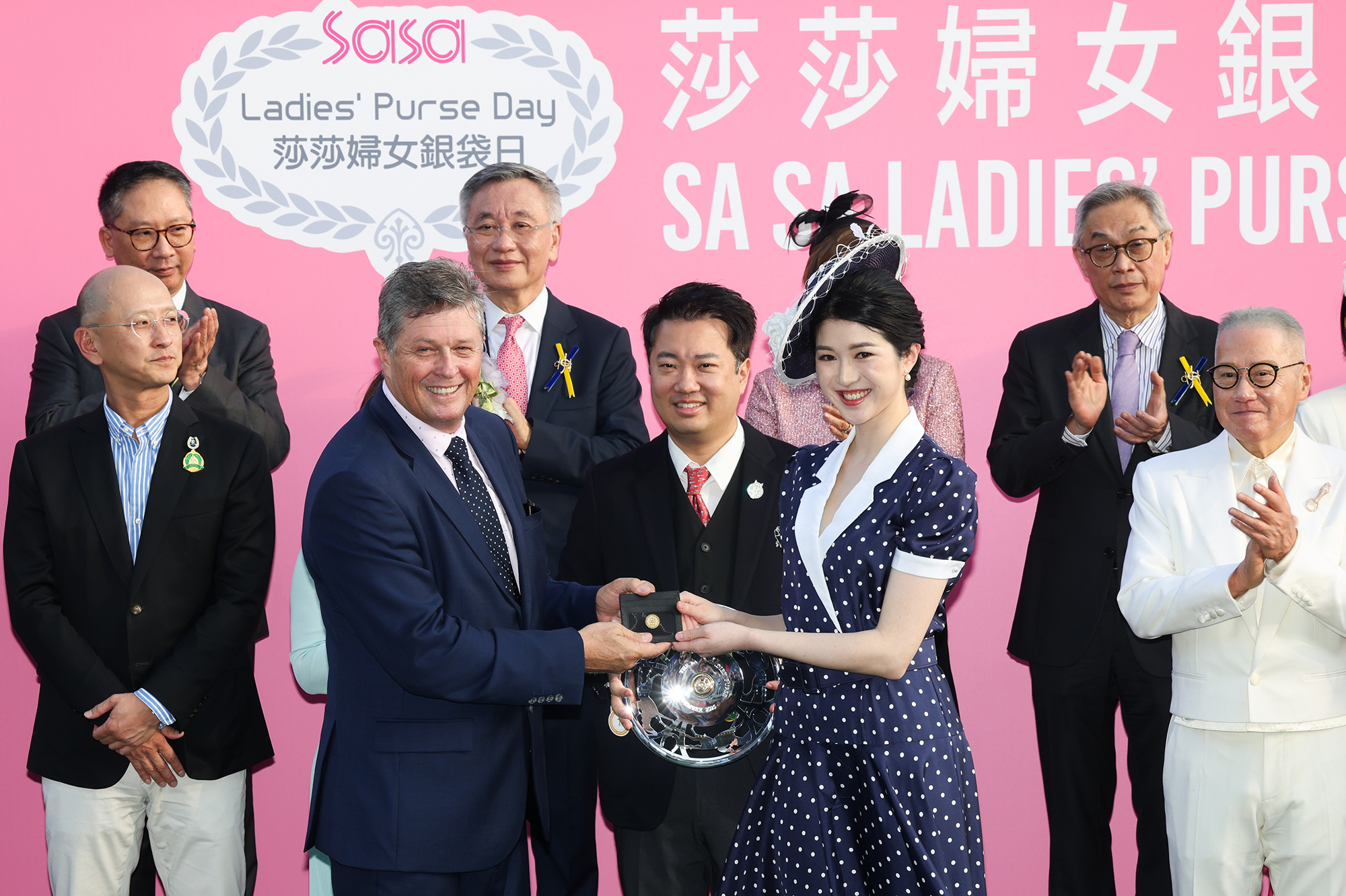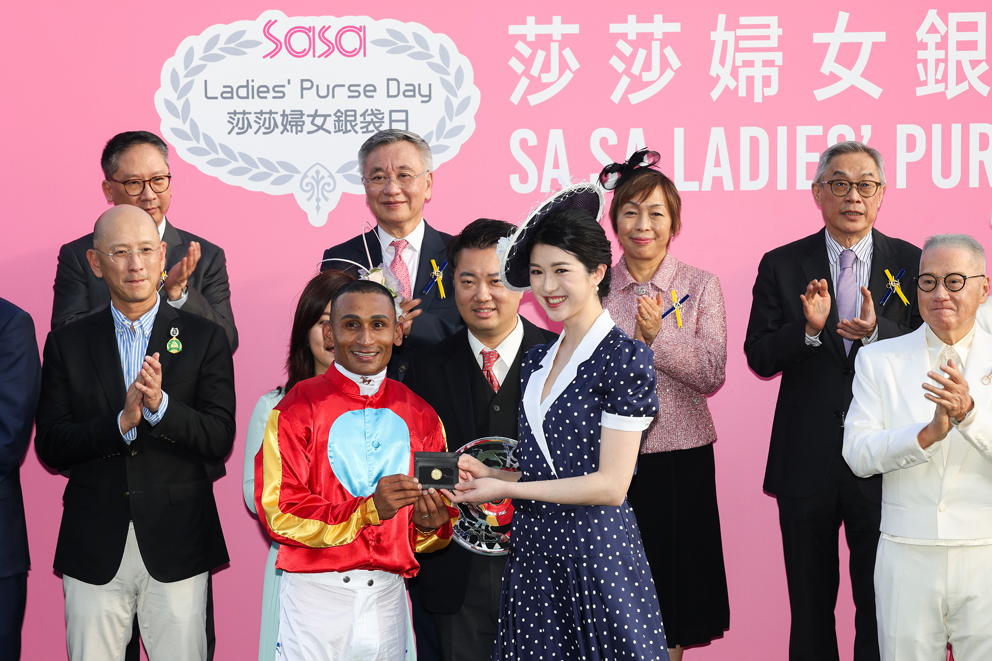 香港賽馬會遴選會員兼馬主郭琳廣SBS太平紳士的女兒郭展容在莎莎婦女銀袋頒獎儀式上分別致送一枚以錢包裝載的金幣予「安遇」的馬主代表王賢敏、練馬師桂福特及騎師田泰安。