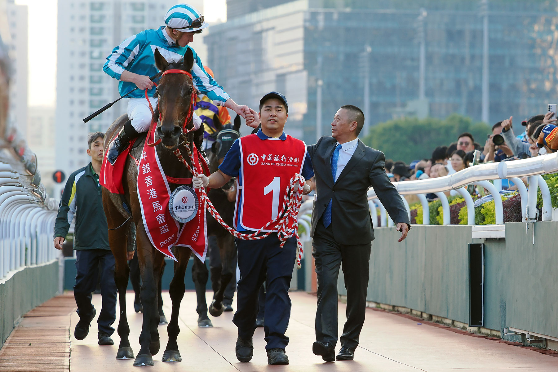 沈集成說:「我想藉此機會感謝我的團隊,尤其是馬房助理和策騎員,他們在馬兒身上付出了很多努力。當然,我還要感謝馬房獸醫陳偉謙醫生,他對馬兒的康復實在功不可沒。」