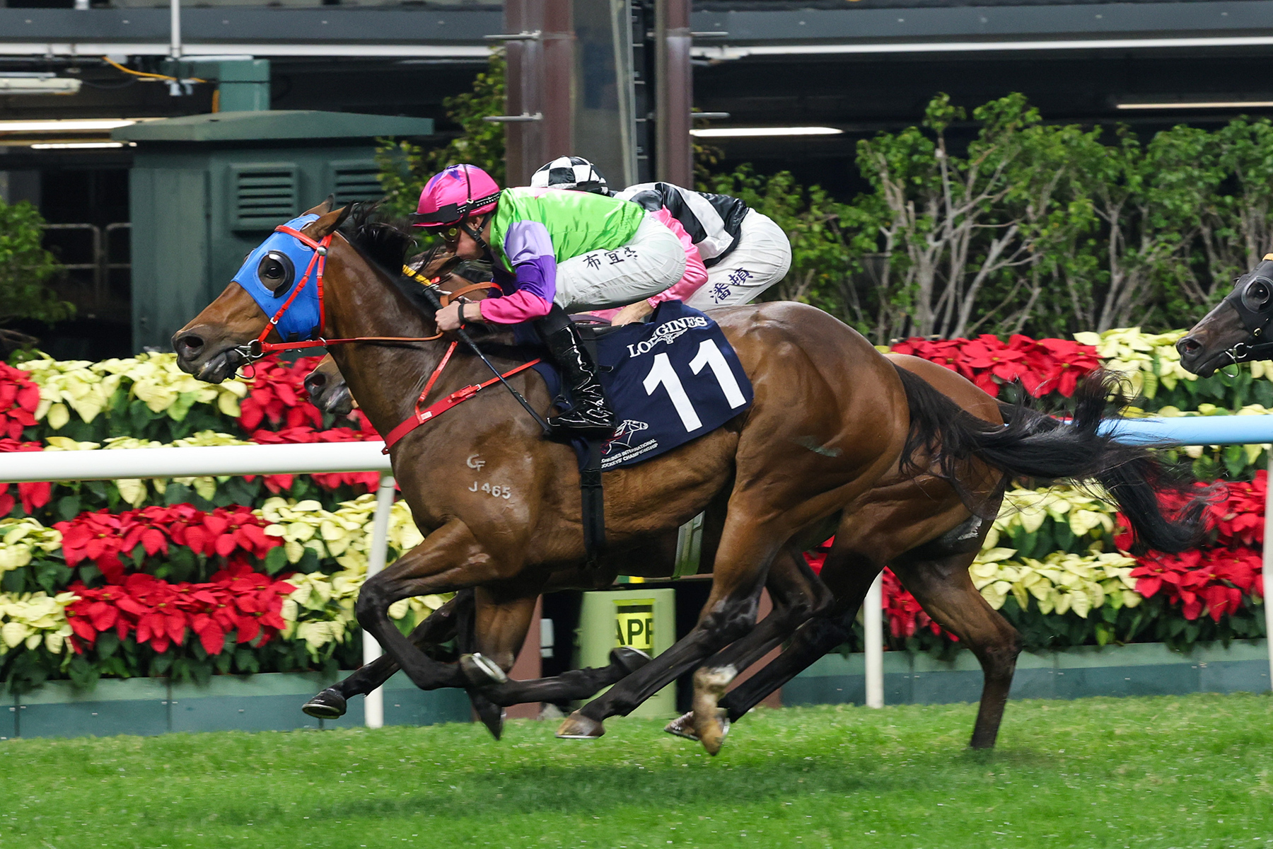 浪琴國際騎師錦標賽首關在第四場上演,布宜學策騎的「品德寶寶」(11號)先拔頭籌。