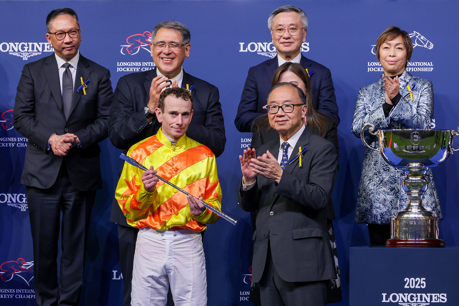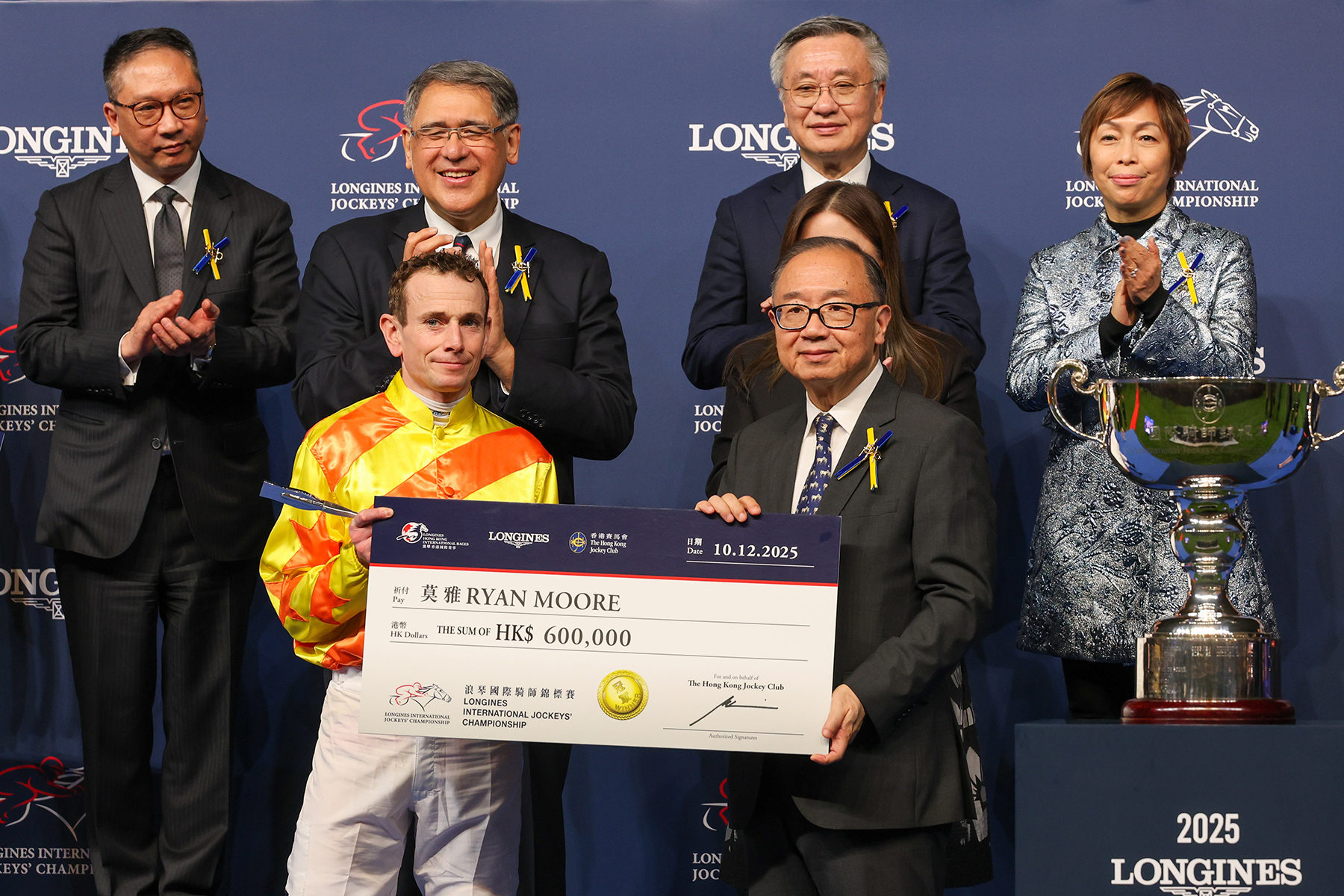 浪琴國際騎師錦標賽冠軍莫雅舉盃祝捷。