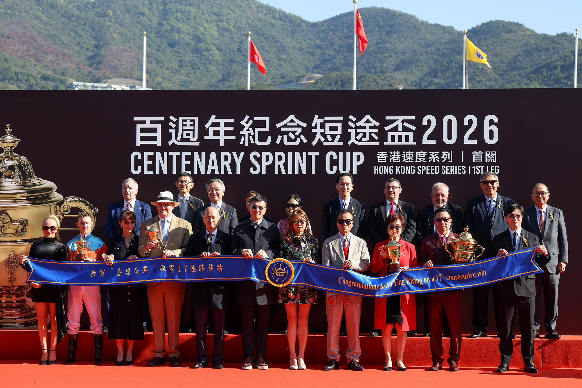 由大衛希斯訓練的「嘉應高昇」,在潘頓胯下成功衛冕今日(1月25日星期日)在沙田馬場舉行、總獎金高達一千三百萬港元的一級賽百週年紀念短途盃(1200米),連勝紀錄延續至十七場,追平傳奇名駒「精英大師」保持的中國香港訓練賽駒連勝數目紀錄。