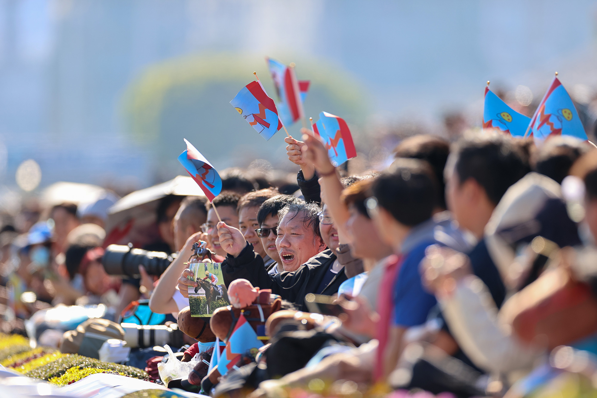 入場賓客及馬迷配合賽日主題,穿著有藍色元素的服飾出席「時尚賽馬日」。