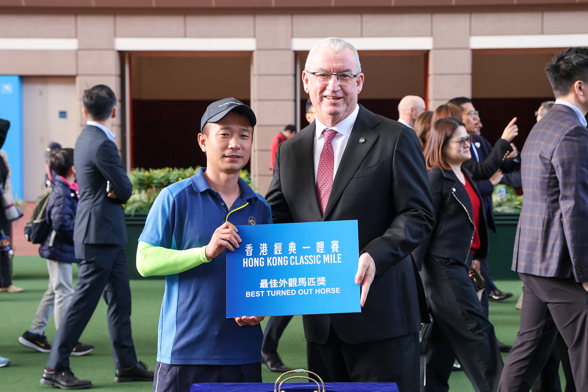 香港賽馬會董事韋安祖頒發香港經典一哩賽獎盃予「小鳥天堂」的馬主高金沛以及頒發小型獎盃予練馬師丁冠豪及騎師何澤堯。