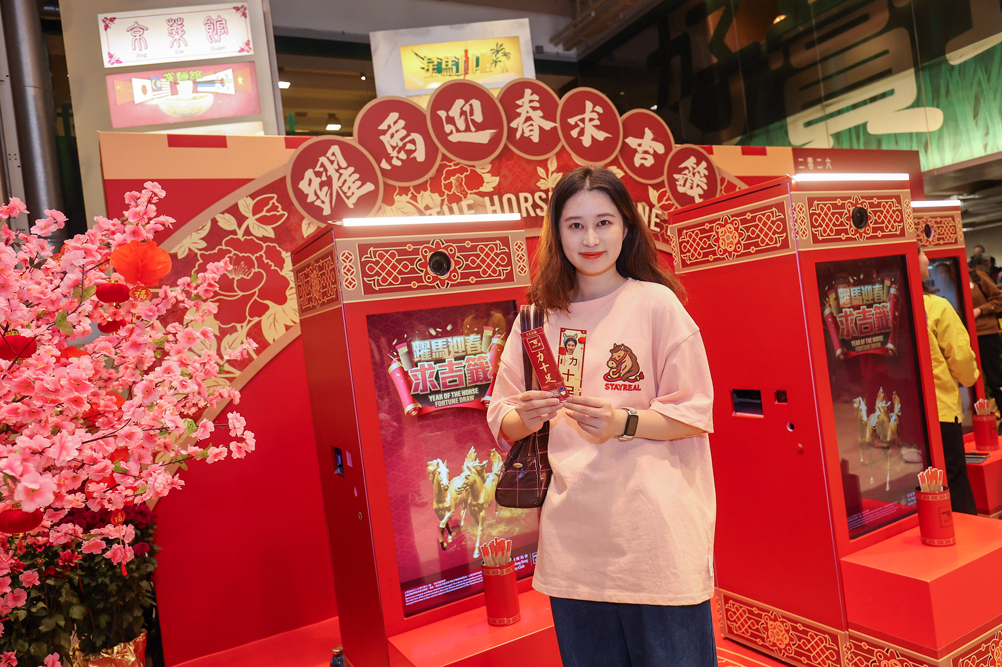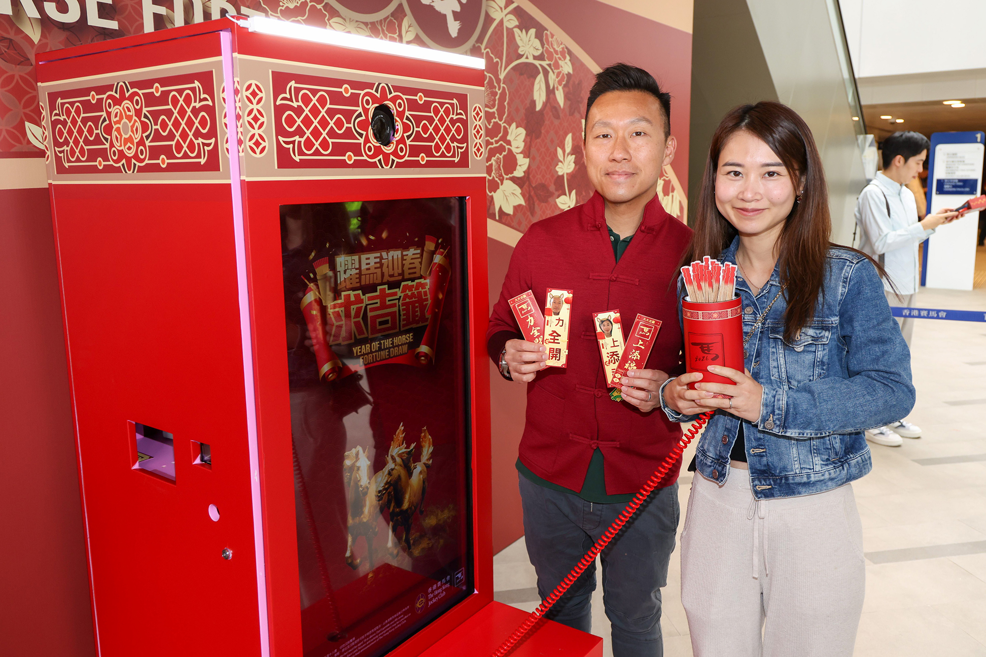 沙田馬場「好賞食」樓下設置「躍馬迎春求吉籤」電子求籤裝置,供入場人士製作專屬個人化揮春。