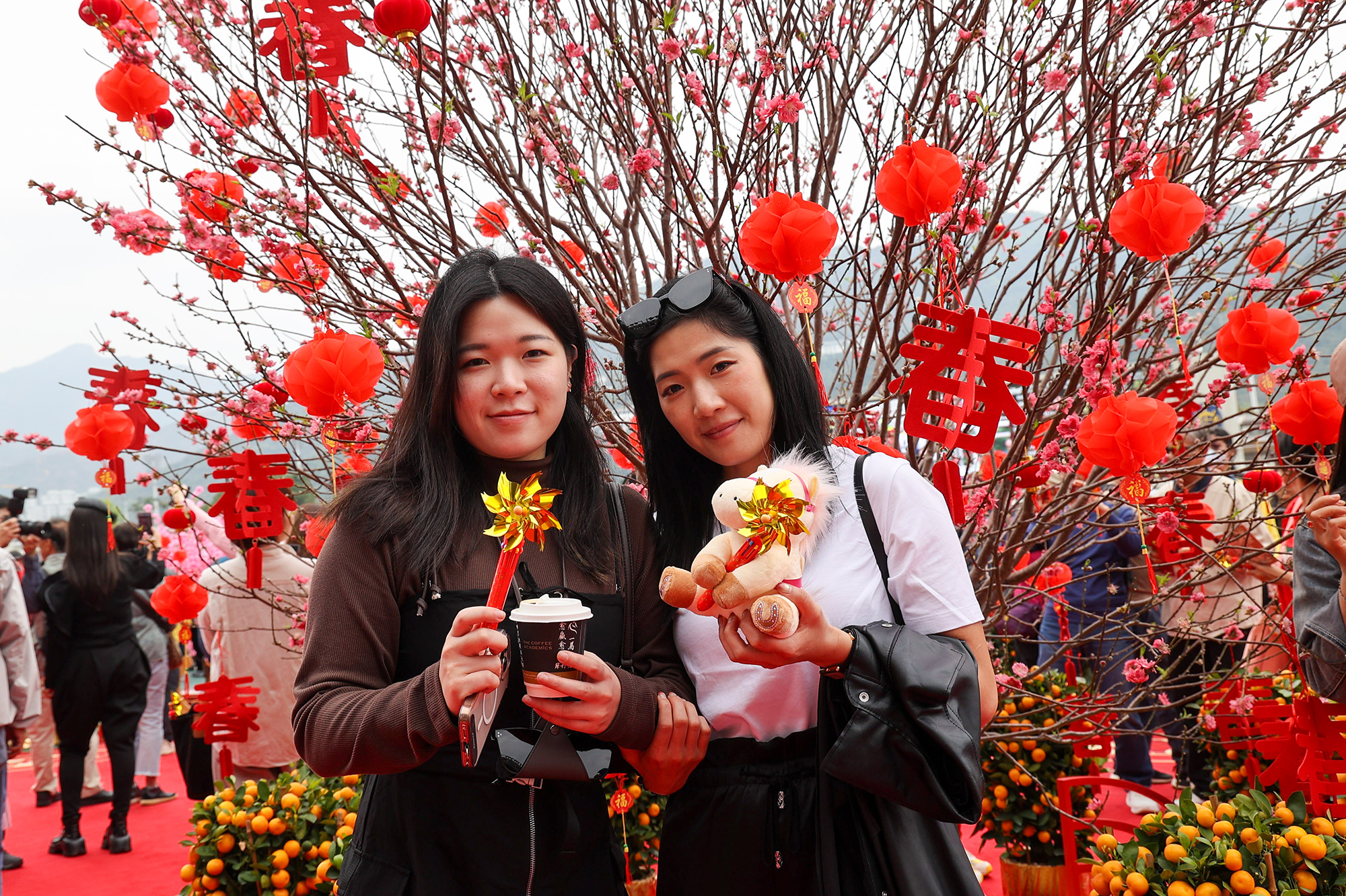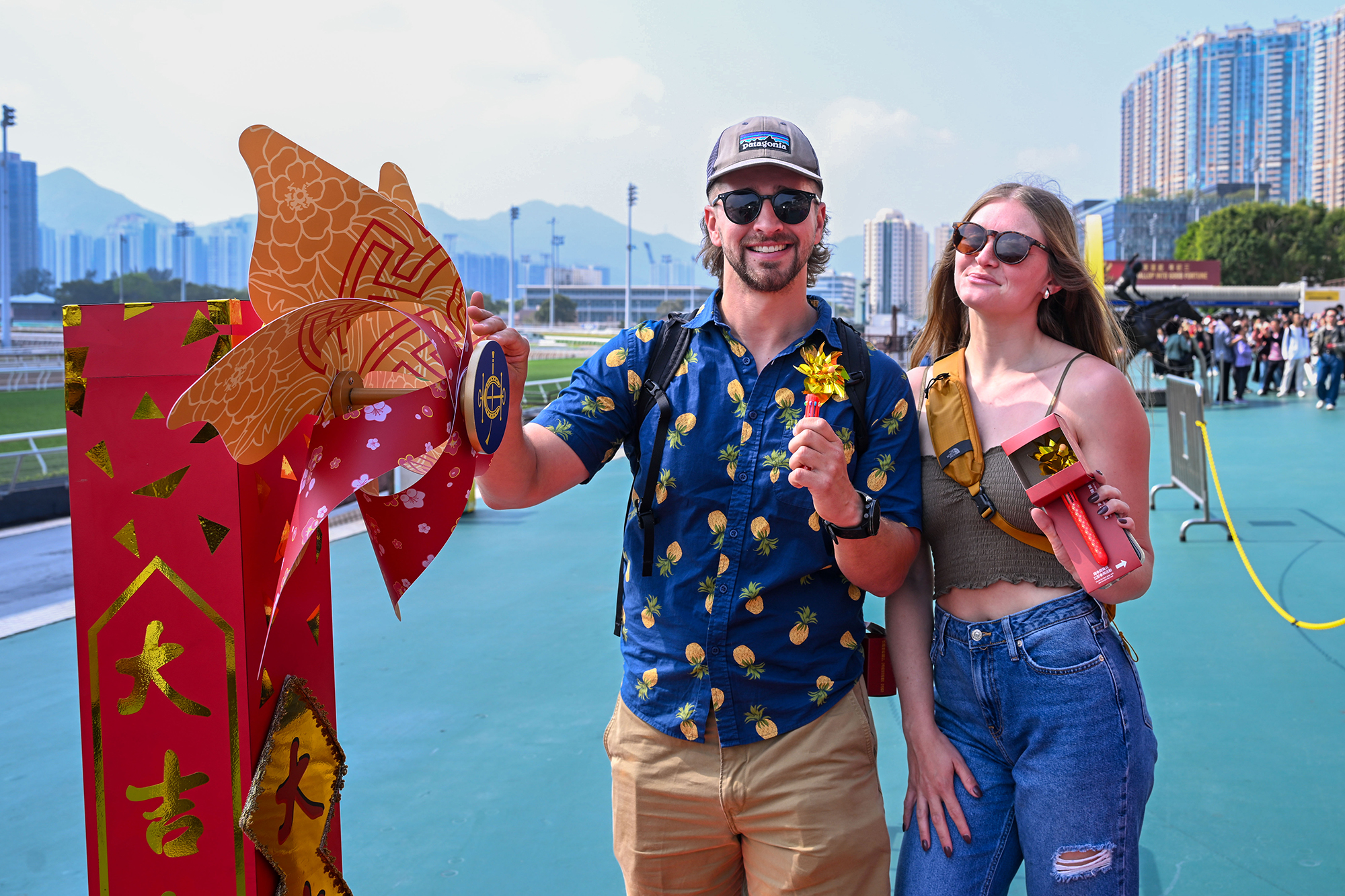 沙田馬場公眾席廣場特設巨型風車陣及桃花陣。