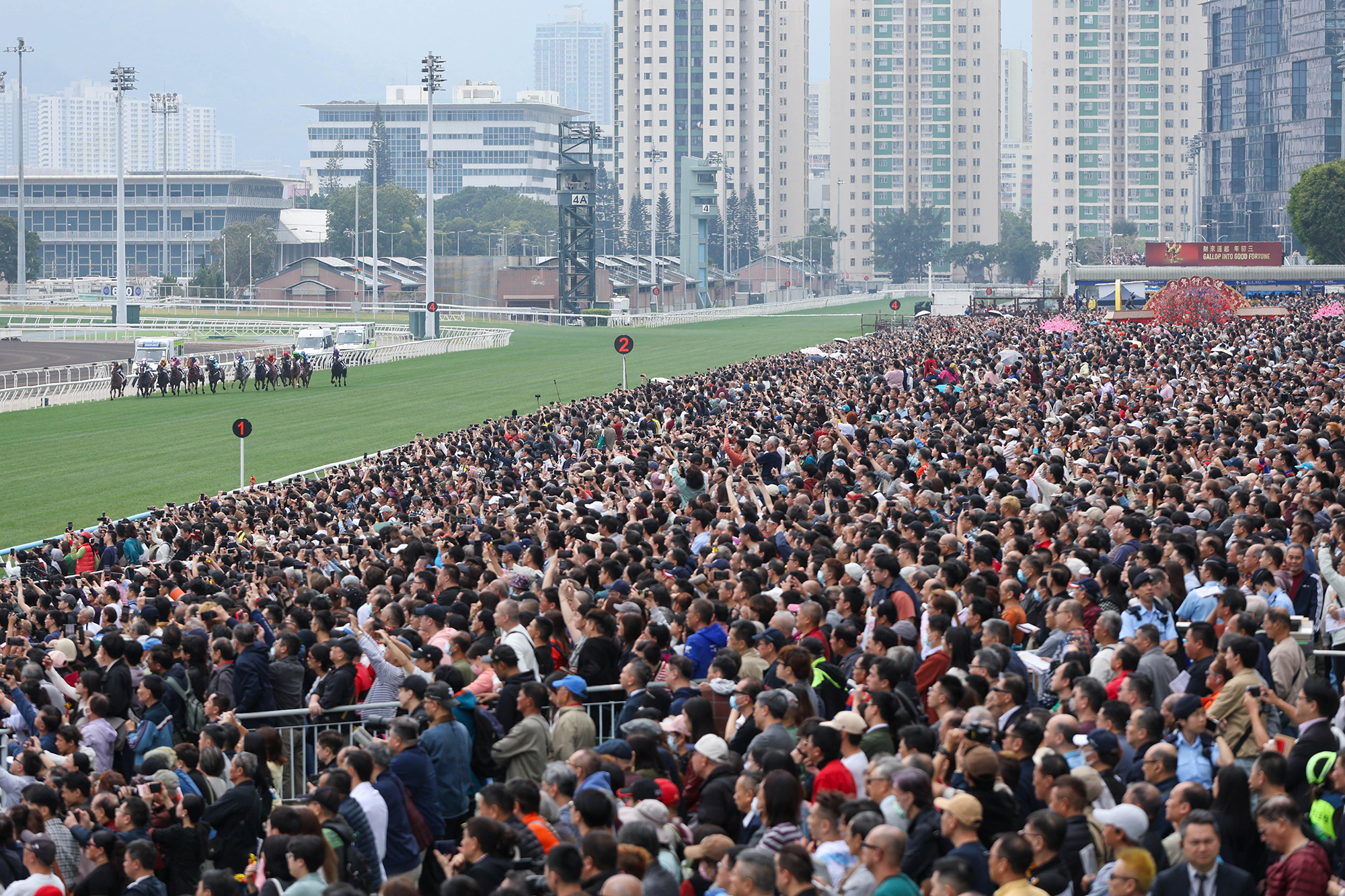 馬年賽馬日吸引一眾市民及旅客入場觀看賽馬歡度新歲。