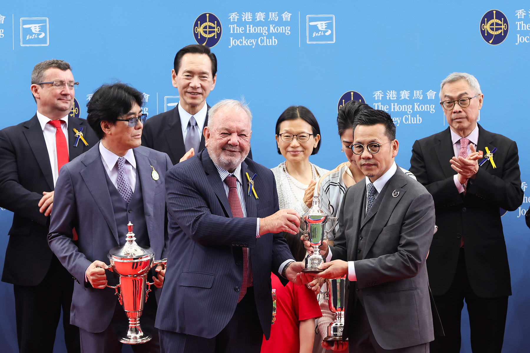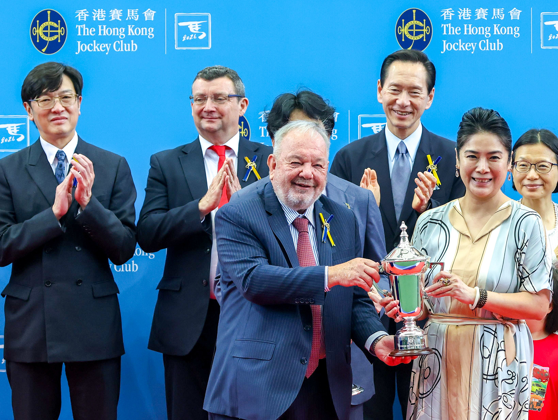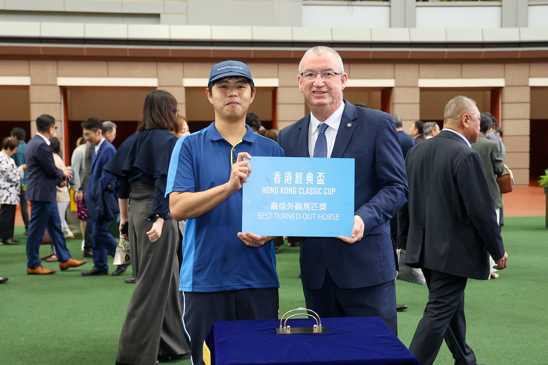 馬會董事孔思和在頒獎儀式上,將香港經典盃獎盃及小型獎盃頒予「紫荊盛勢」的馬主陳國泰與陳李妮、練馬師羅富全及騎師班德禮。