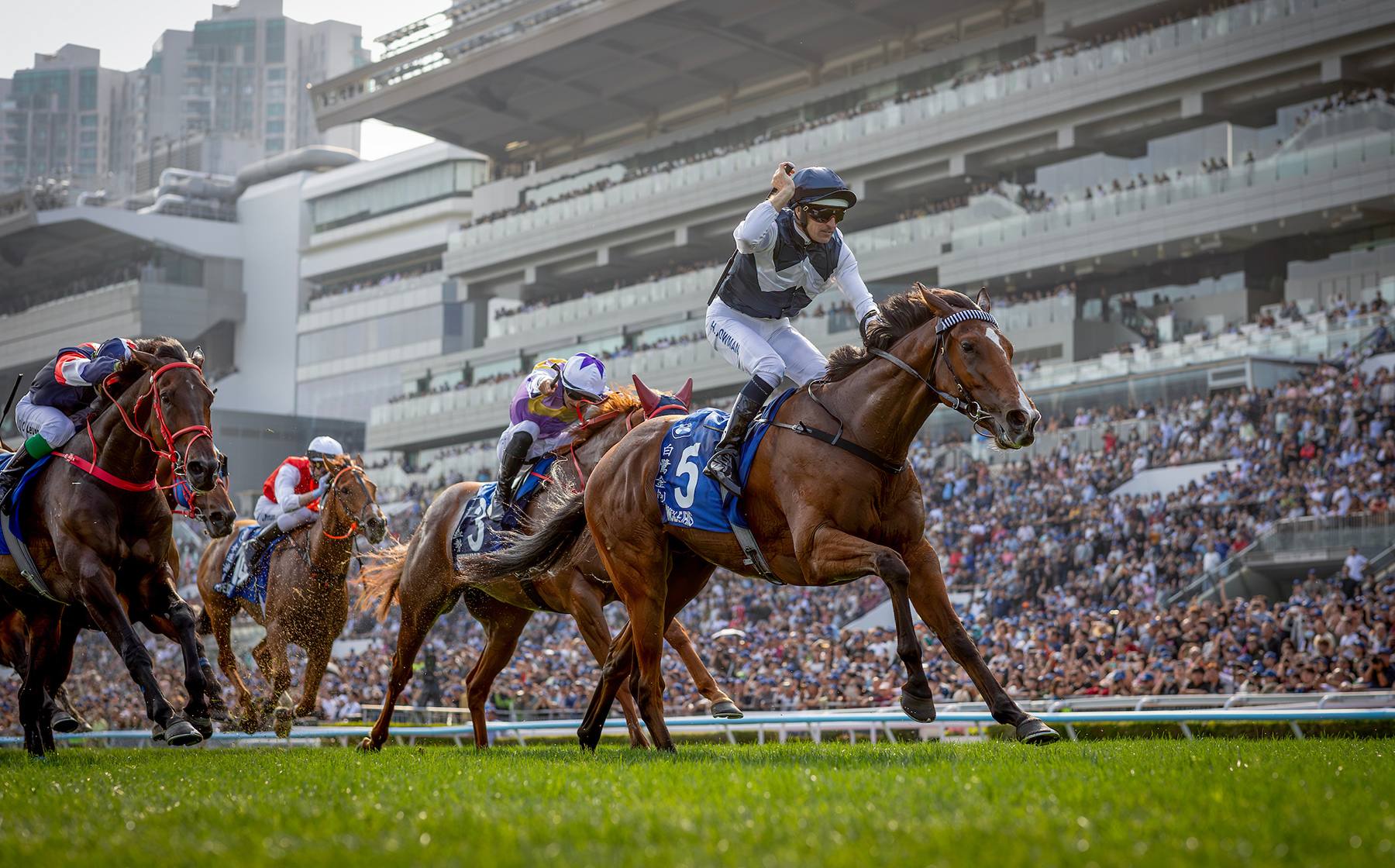寶馬香港打吡大使甄子丹頒發特別設計的獎盃予「白鷺金剛 」的騎師布文。
