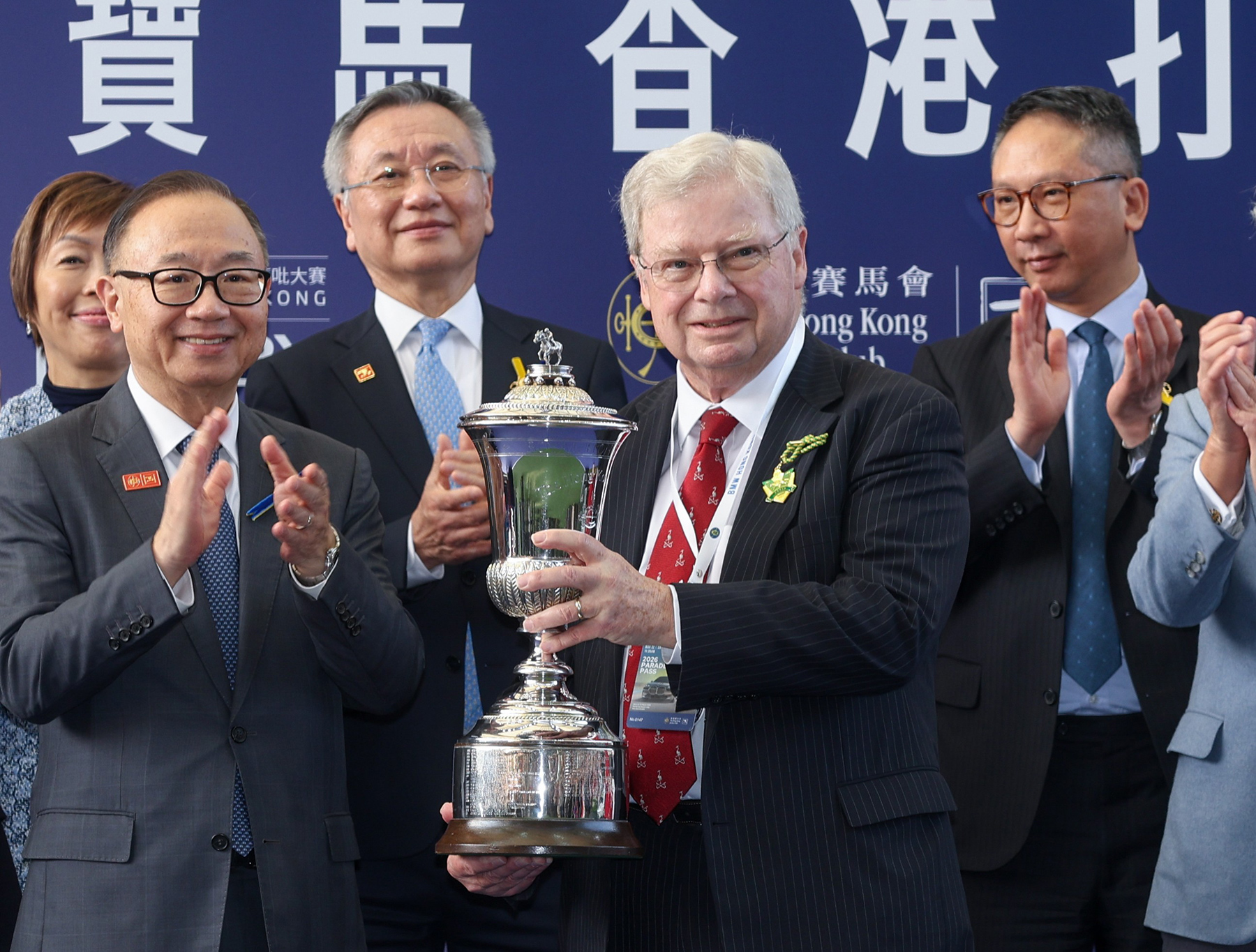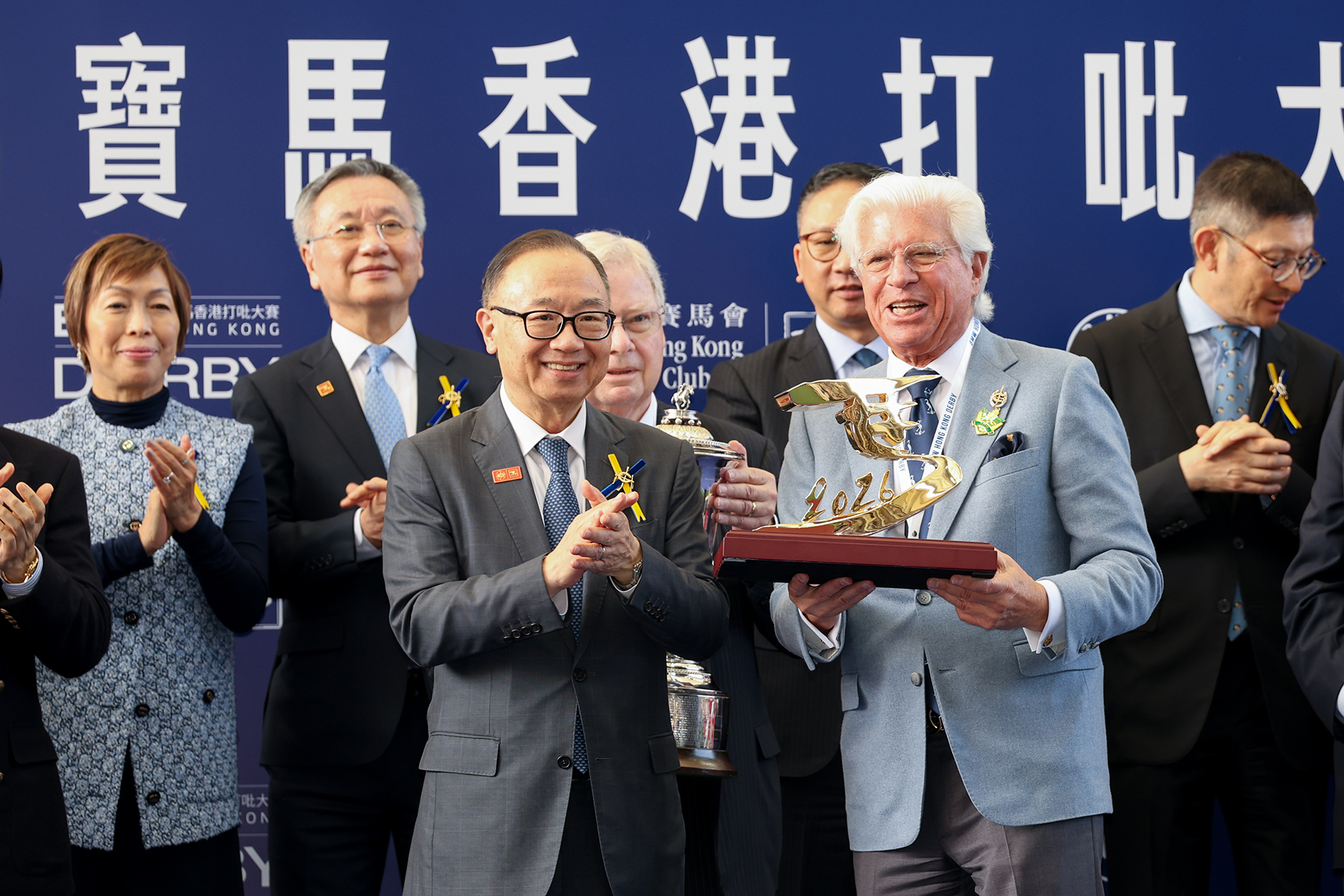 馬會主席廖長江在頒獎禮上分別將打吡冠軍獎盃及特別設計的獎盃頒予「白鷺金剛 」的馬主白鷺團體經理人艾志思及鄧思高、練馬師廖康銘。