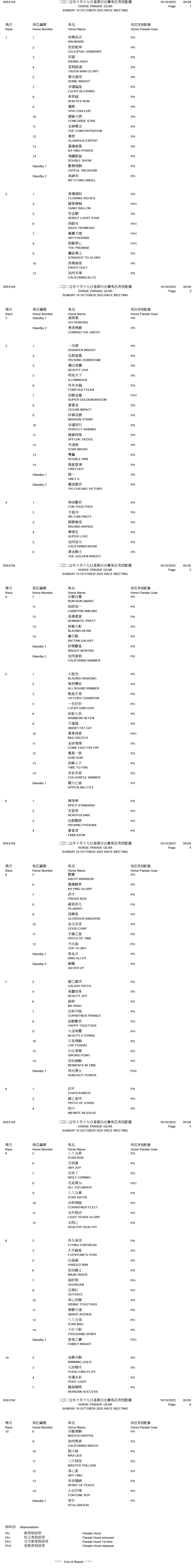 Horses stabled in Conghua since last start – Thursday 30 October 2025 Race Meeting
