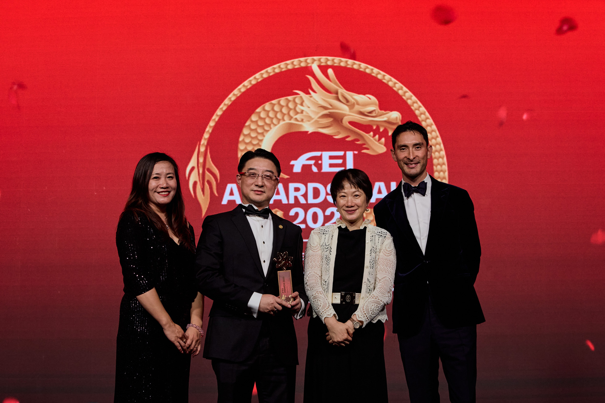 One of the evening’s key highlights was the presentation of the FEI Inspire Award, which was won by the Shanghai Sports Development Foundation’s Beat as One – Stable Management Challenge. Launched three years ago in partnership with the Shanghai Equestrian Association, the initiative has redefined stable management and horse welfare education in China. Alex Hua Tian, the Mainland Equestrian Ambassador for the Jockey Club, also serves as the programme’s ambassador, championing its efforts to improve horse welfare and management practices.