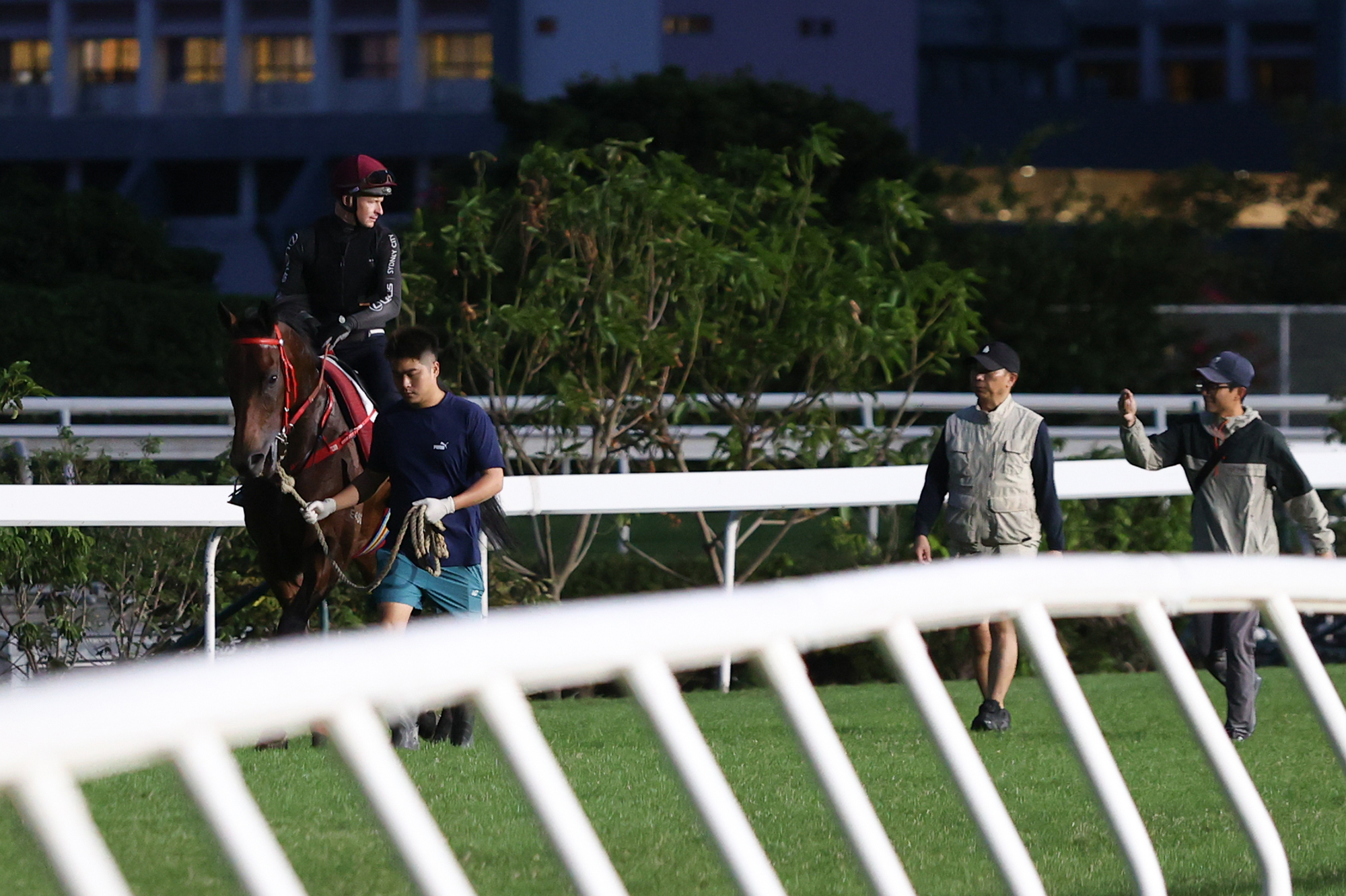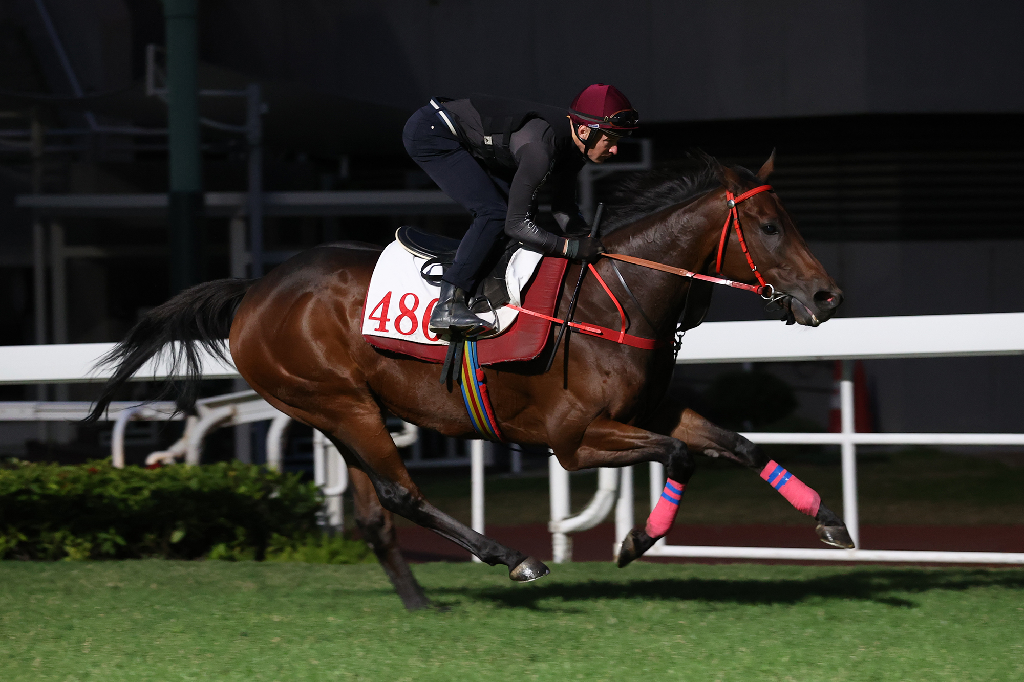 Entering Sha Tin’s turf track via the sand ring, Romantic Warrior powered down the back stretch ahead of his work partner (Romantic Thor) with McDonald firmly in control. In the home straight, the bay gelding was given some rein, zipping effortlessly past a collection of press and photographers with ease before returning home under Shum’s close eye after clocking 1m 14.7s (26.3, 25.8, 22.6).