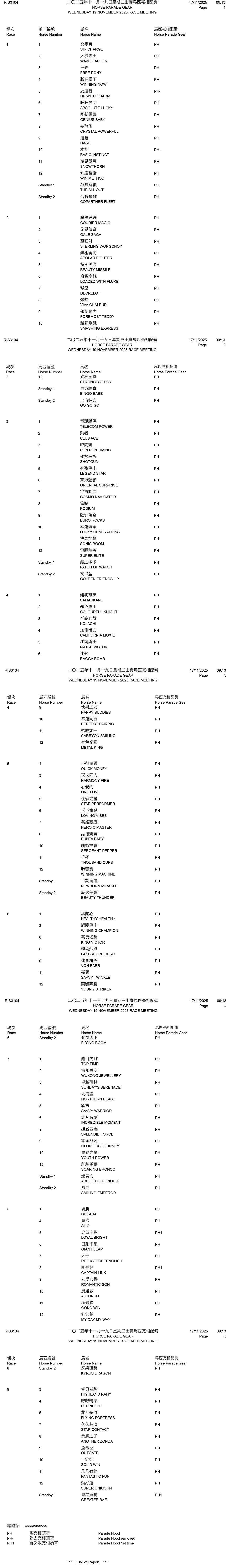 Horses stabled in Conghua since last start – Saturday 15 November 2025 Race Meeting