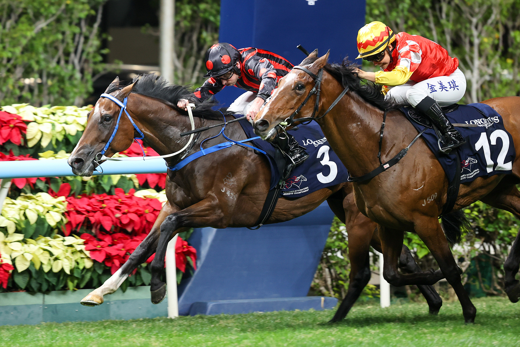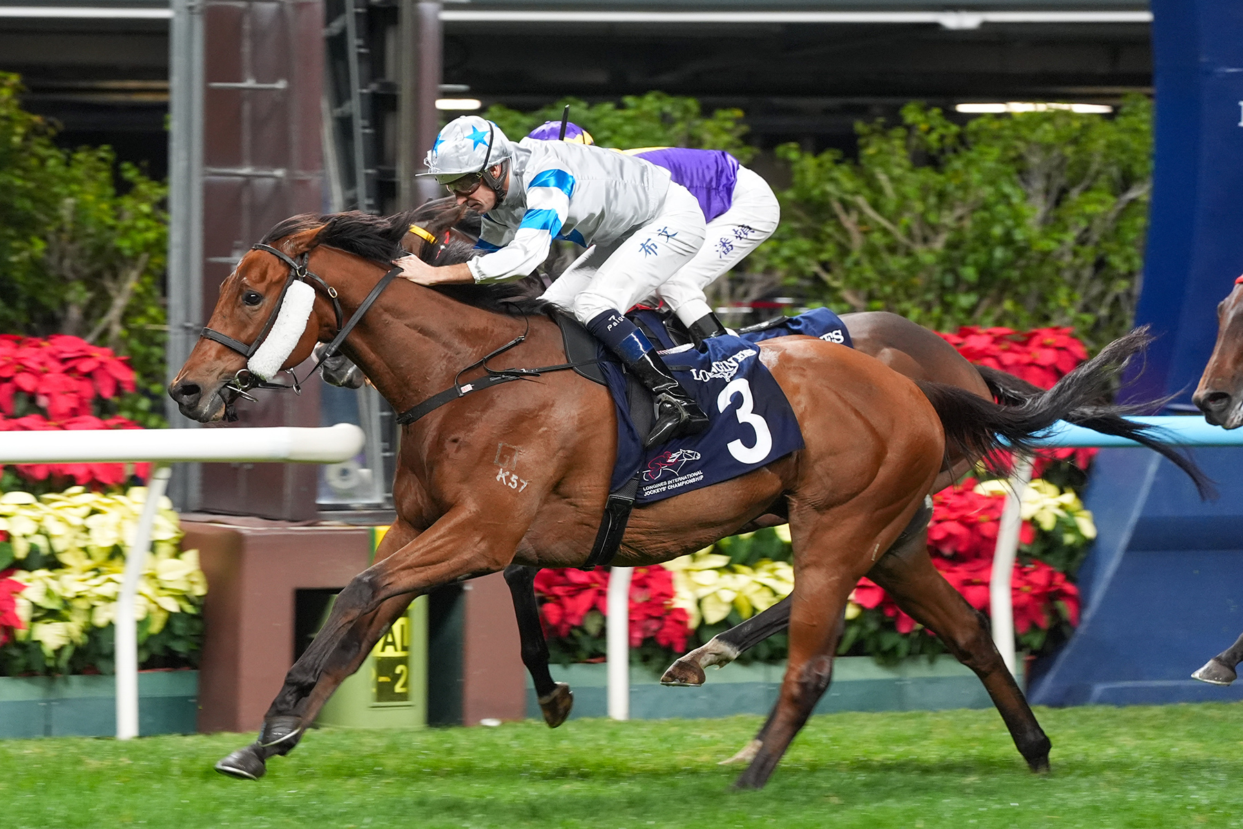 Hugh Bowman lands the 3rd Leg of the LONGINES International Jockeys’ Championship aboard Silvery Breeze (No. 3) at Happy Valley tonight (Wednesday, 10 December).