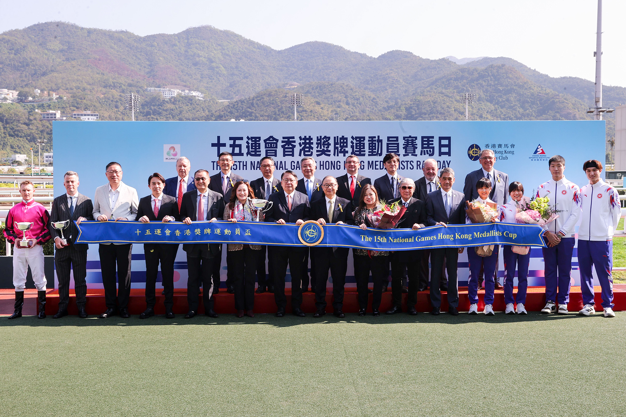 The Hong Kong Jockey Club (the Club) hosted the 15th National Games Hong Kong Medallists Raceday today (18 January) at Sha Tin Racecourse in recognition of the most successful National Games in Hong Kong’s history. The Hong Kong Special Administrative Region (HKSAR) team won a landmark nine gold, two silver and eight bronze medals at the Games, which were co-hosted for the first time by Guangdong, Hong Kong and Macao.