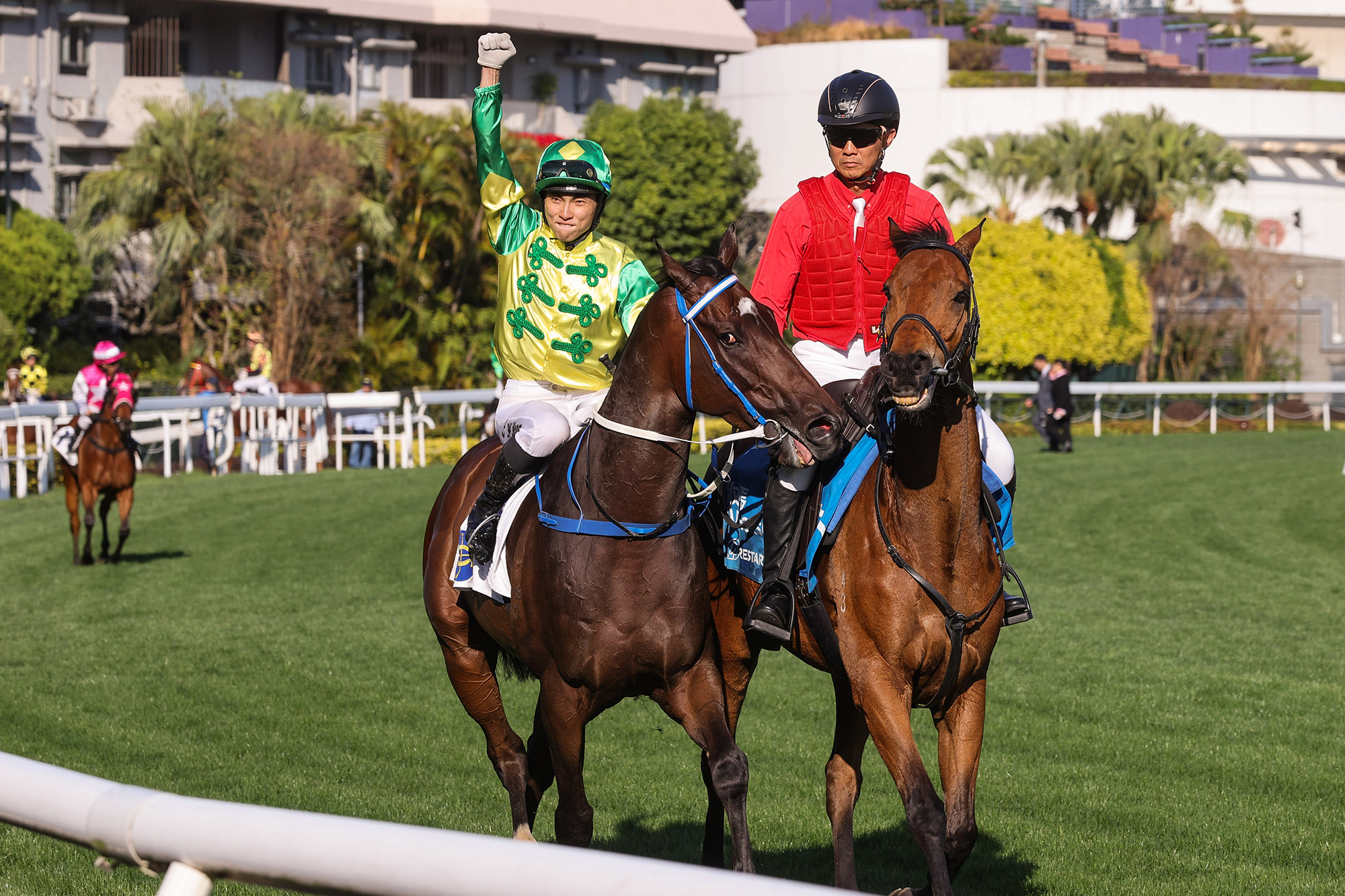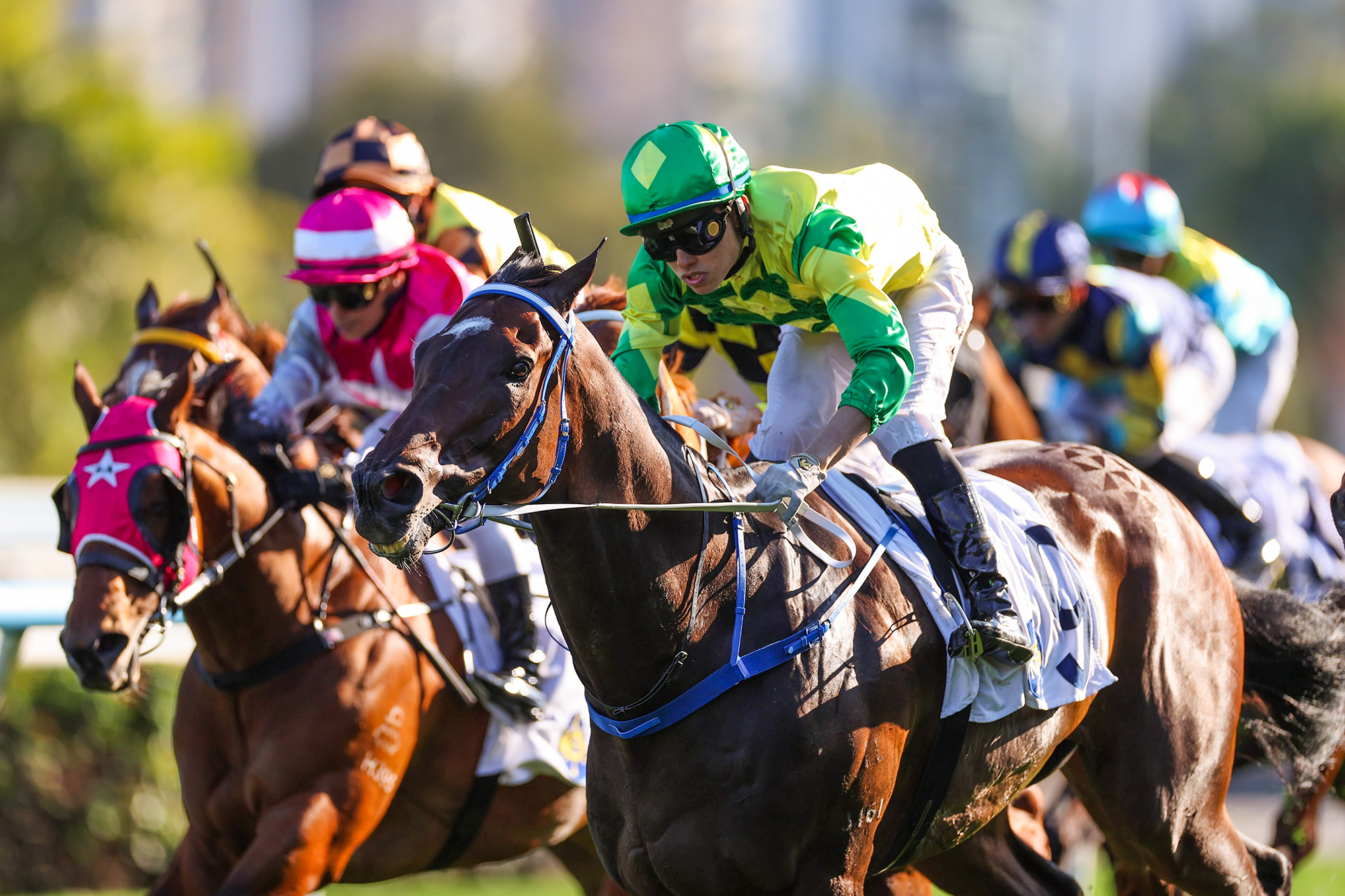 Sky Trust, trained by Caspar Fownes and ridden by Ellis Wong, takes the Class 2 TVB Cup Handicap (1200m) at Sha Tin Racecourse today (Saturday, 14 February), claiming his third win of the season.