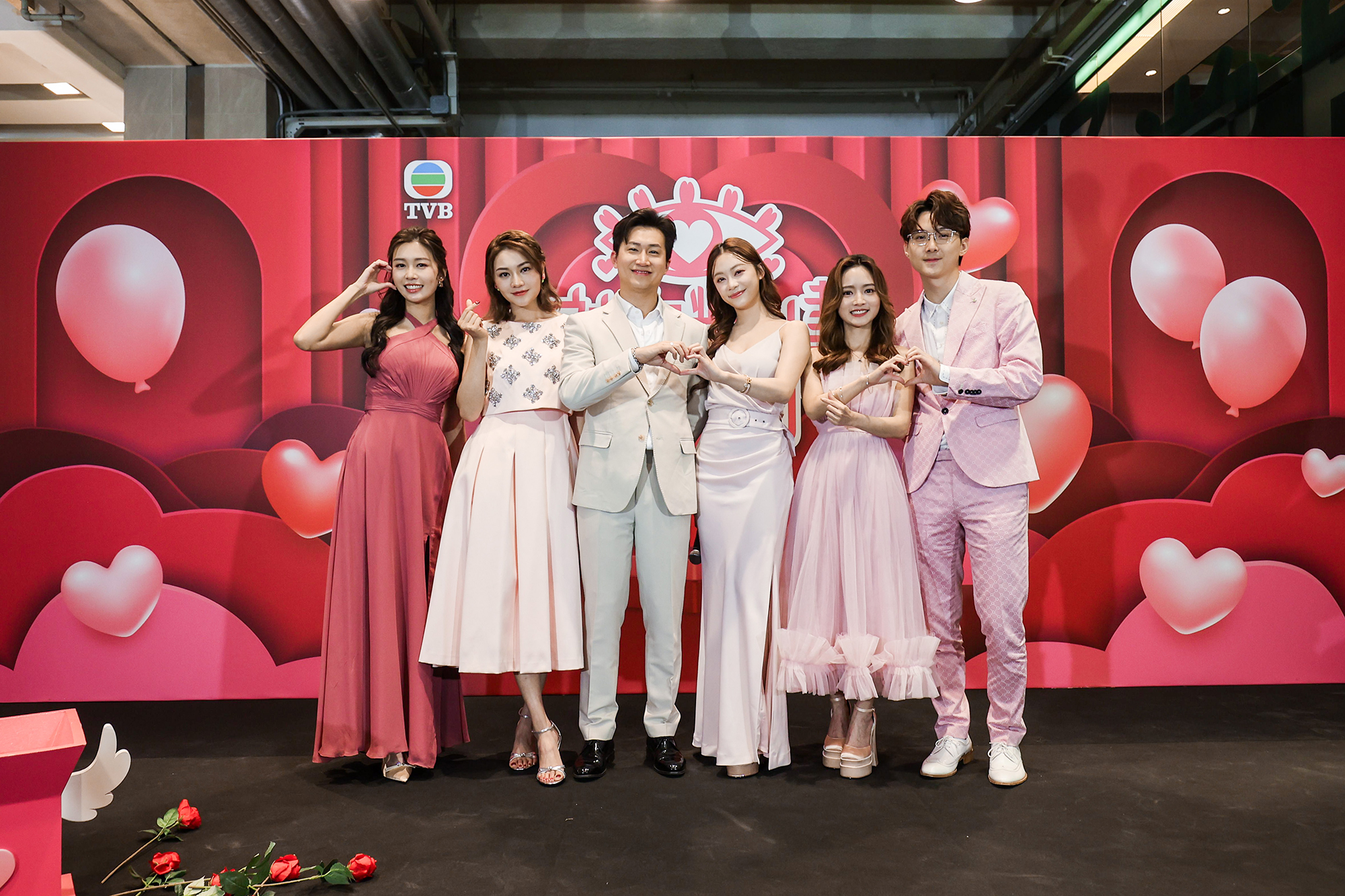 Sophie Yip, GM Tsang, Yuki Law, Kris Lam, Carman Kwan and Stephanie Lee host the Valentine’s Day Mini Game “Rose Flower Toss Challenge” among racing fans.