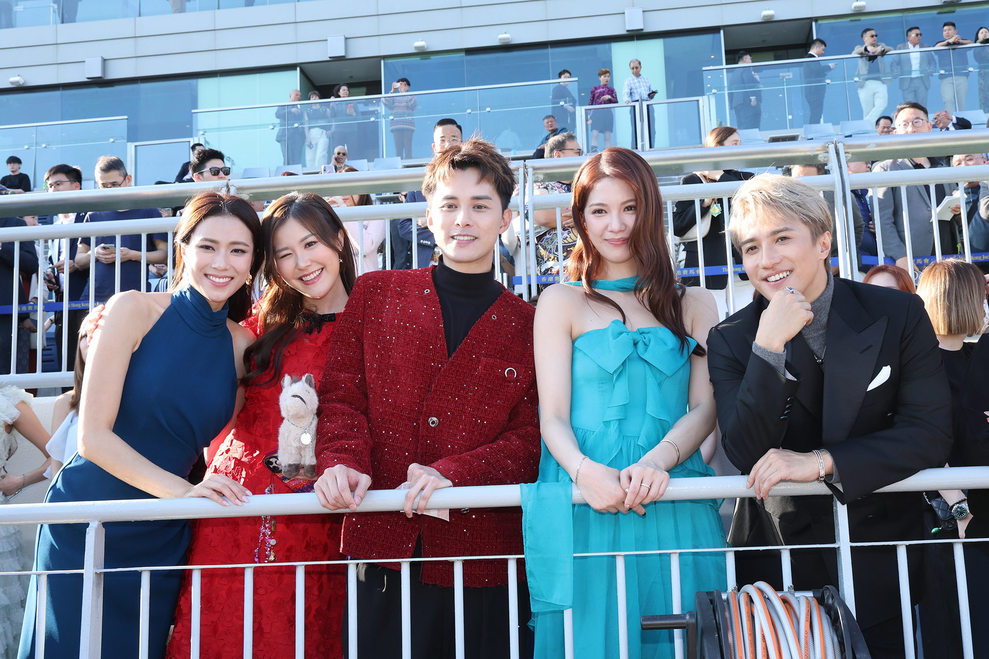 TVB Raceday Opening Ceremony. From left: Miss Stacey Chan, Miss Hong Kong 2025 Winner; Siu Sai Wo, General Manager (Business Operations) of TVB; Dr Liza Wang Ming Chuen, esteemed Hong Kong entertainment icon; Thomas Hui, Executive Chairman of TVB; Moray Taylor-Smith, Acting Chief Executive Officer, The Hong Kong Jockey Club; Dr Claus Weidner, Acting Executive Director, Racing, The Hong Kong Jockey Club and Irene Leung, Acting Executive Director, Sports Business, The Hong Kong Jockey Club.