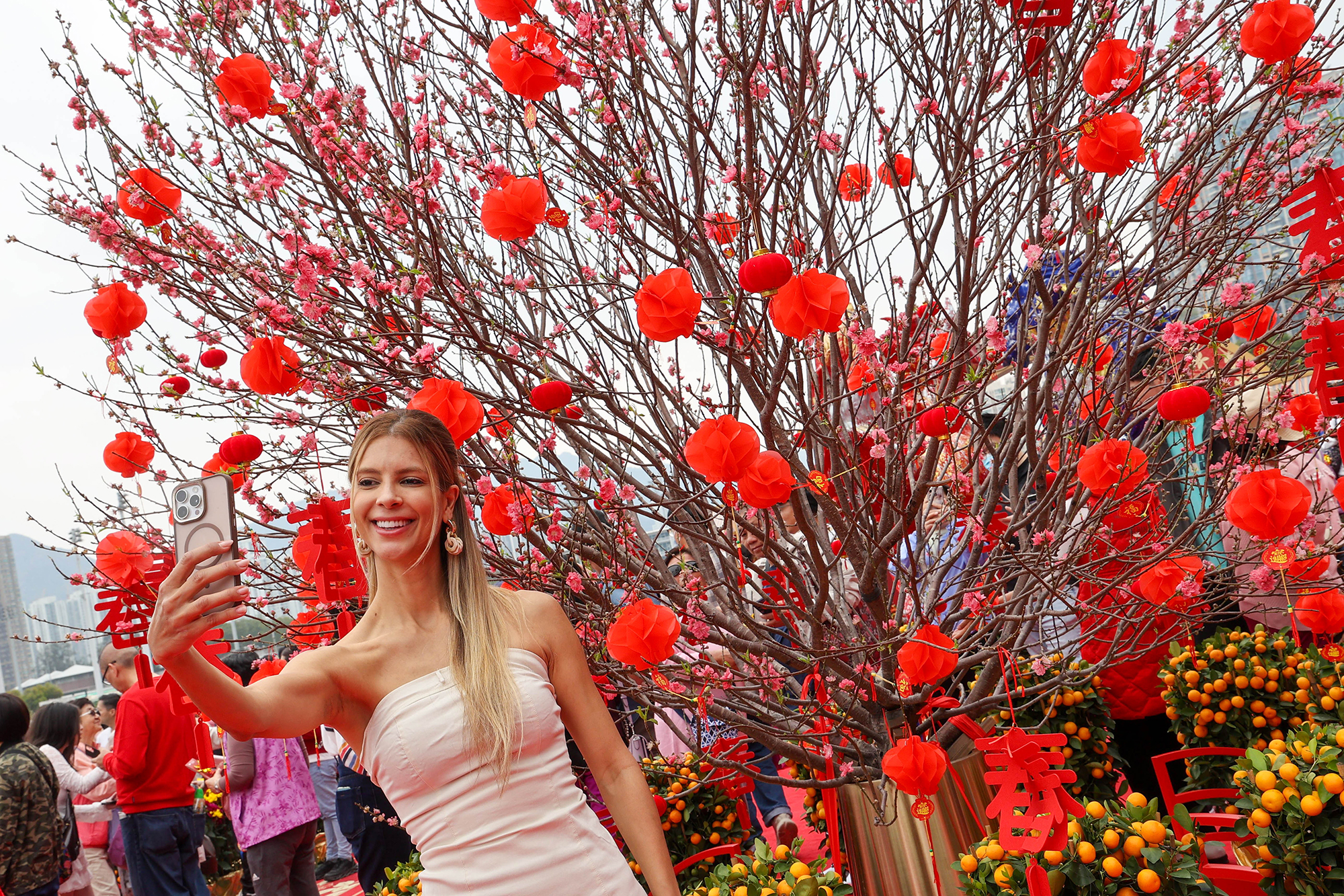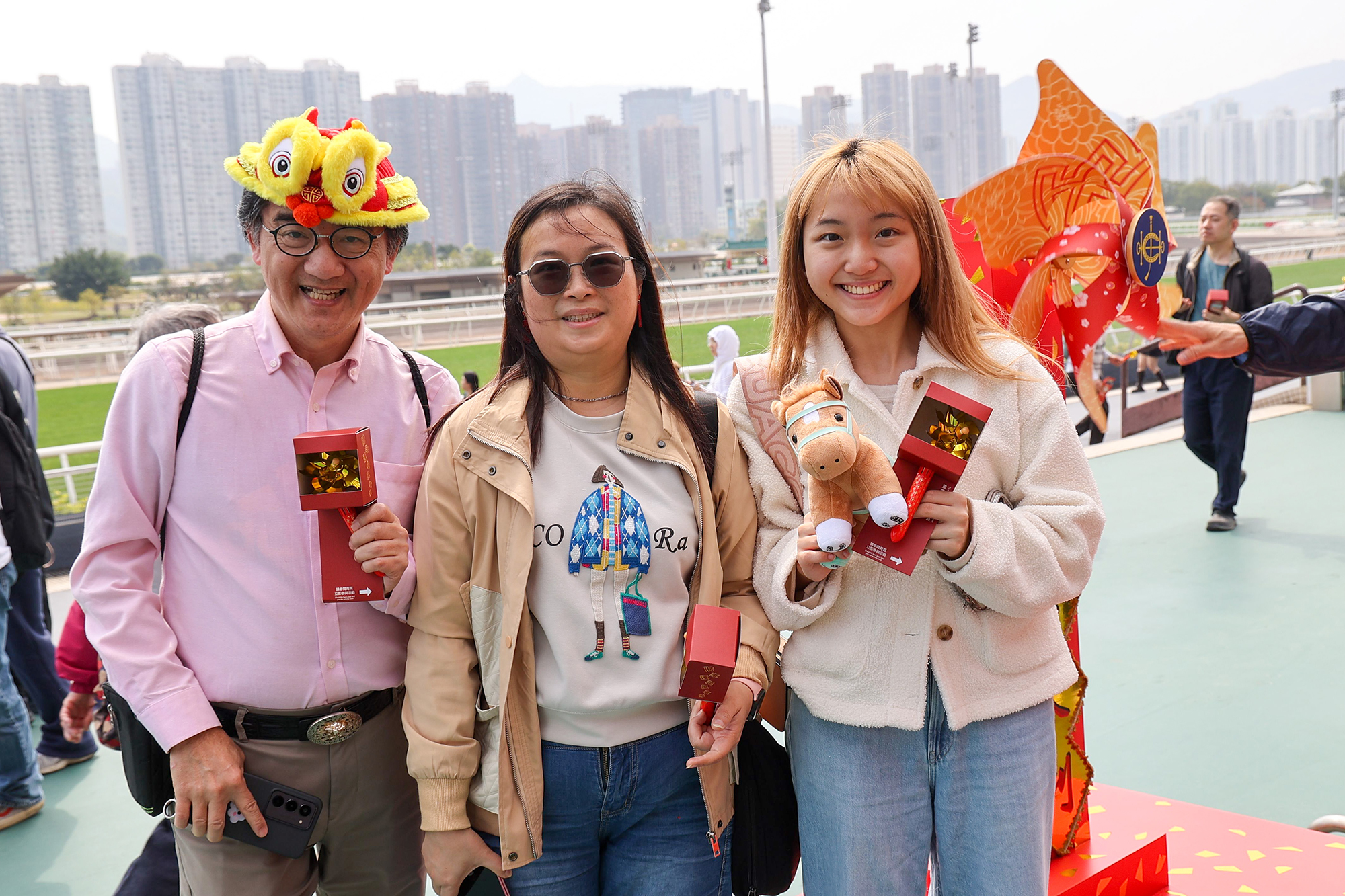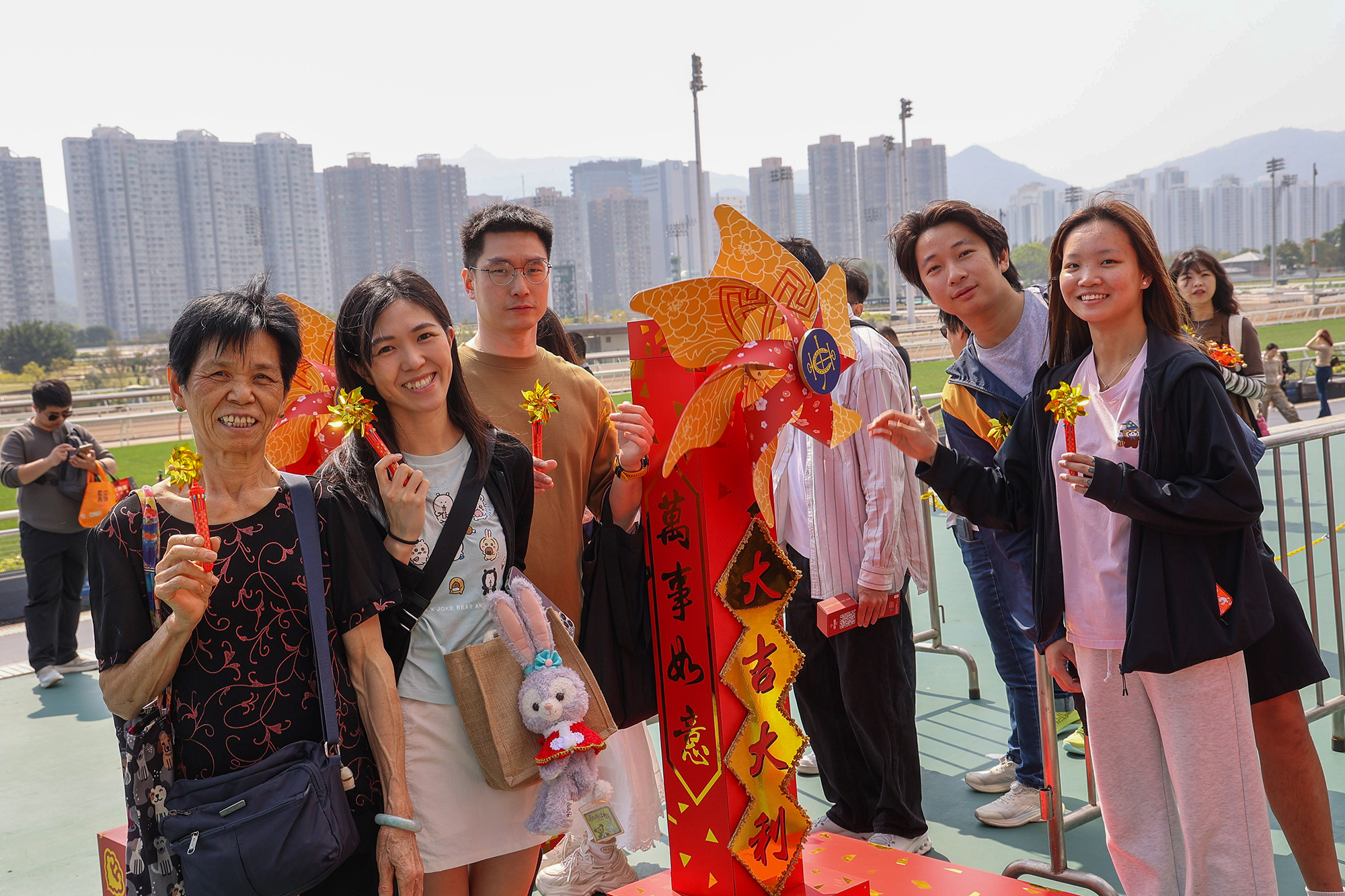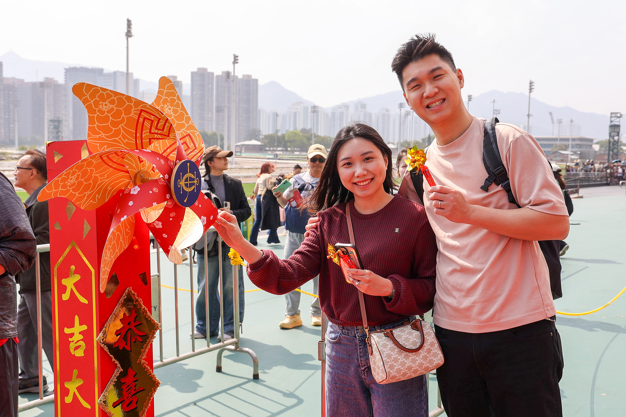 Racegoers can find festive photo spots at Sha Tin’s Public Entrance and Forecourt, which feature windmill arrays, festive peach blossoms and New Year-themed installations and decorations.