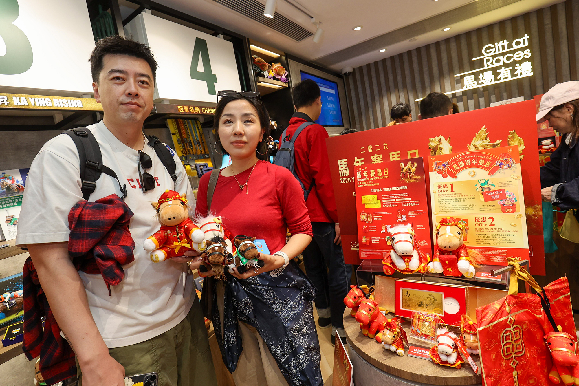 Upon admission to Sha Tin Racecourse, each racegoer, local and tourists alike, receives a Windmill Fortune Pen as a door gift. Sha Tin entrants also participated in the “STRC Delights – Chinese New Year Lucky Draw” by scanning the QR code on the package of the pen or other designated QR codes onsite, offering racegoers a total of 1,888 including Selected Year of the Horse Collectible Art Pieces by the Xu Beihong Art Committee. The grand prize winner receives a designated 999 gold ornament weighing approximately 50g.