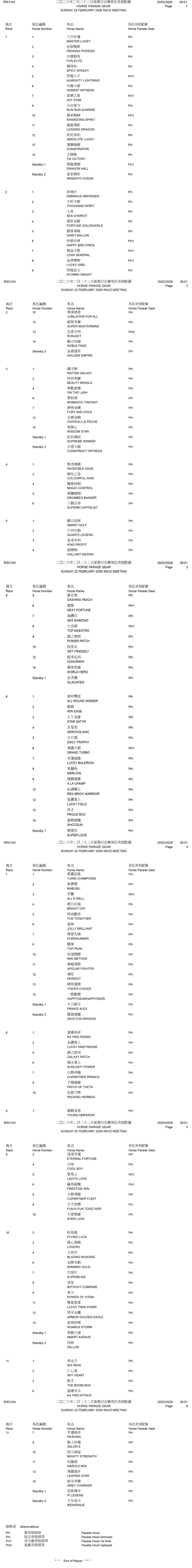 Sunday 22 February 2026 race meeting – Horse Parade Gear