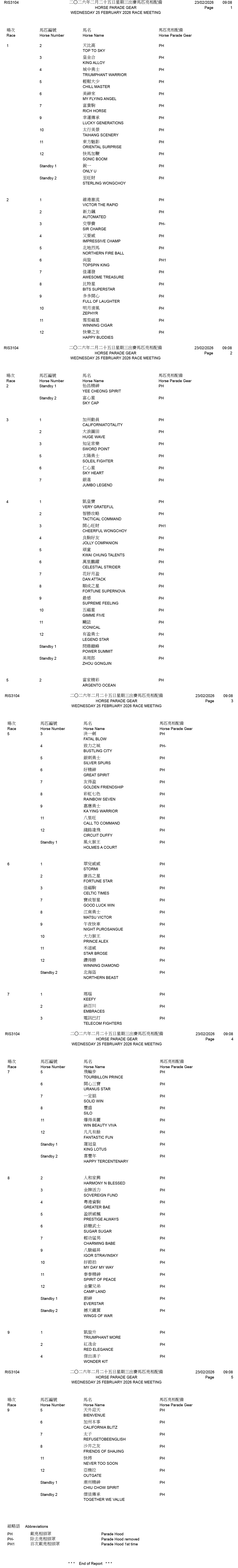 Wednesday 25 February 2026 race meeting – Horse Parade Gear