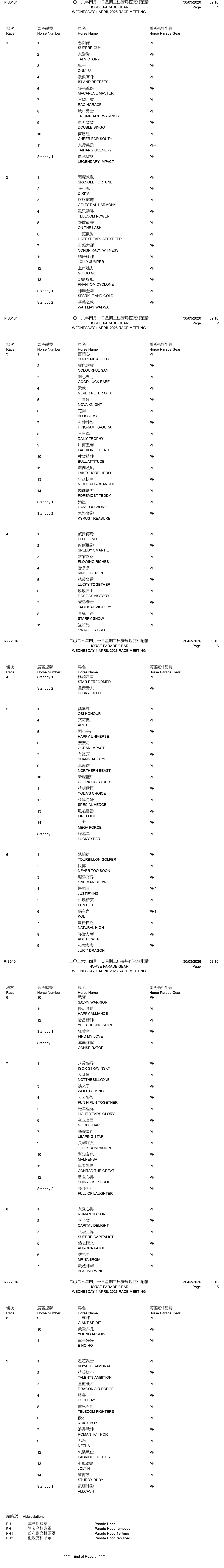 Wednesday 1 April 2026 race meeting – Horses stabled in Conghua since last start