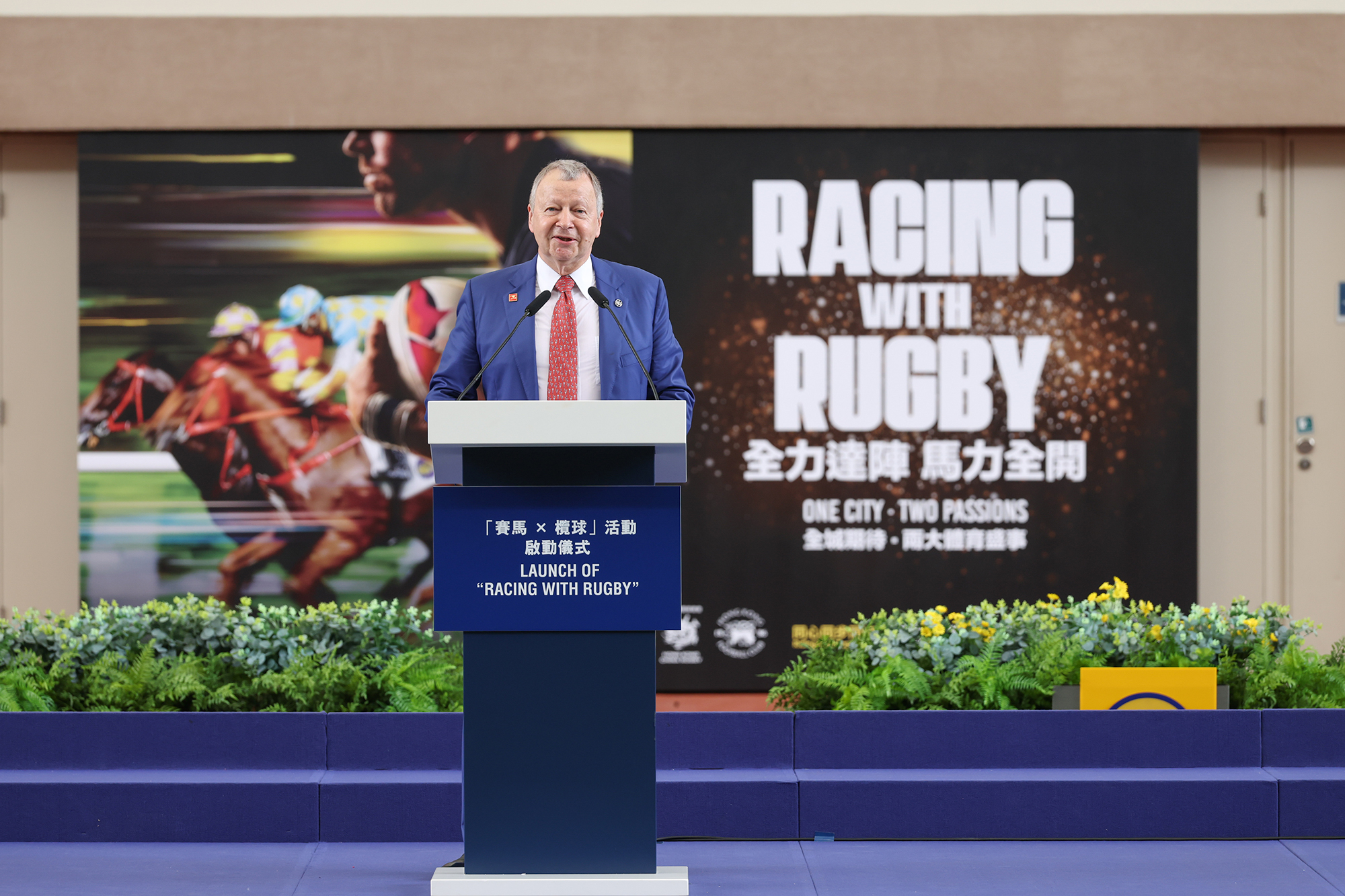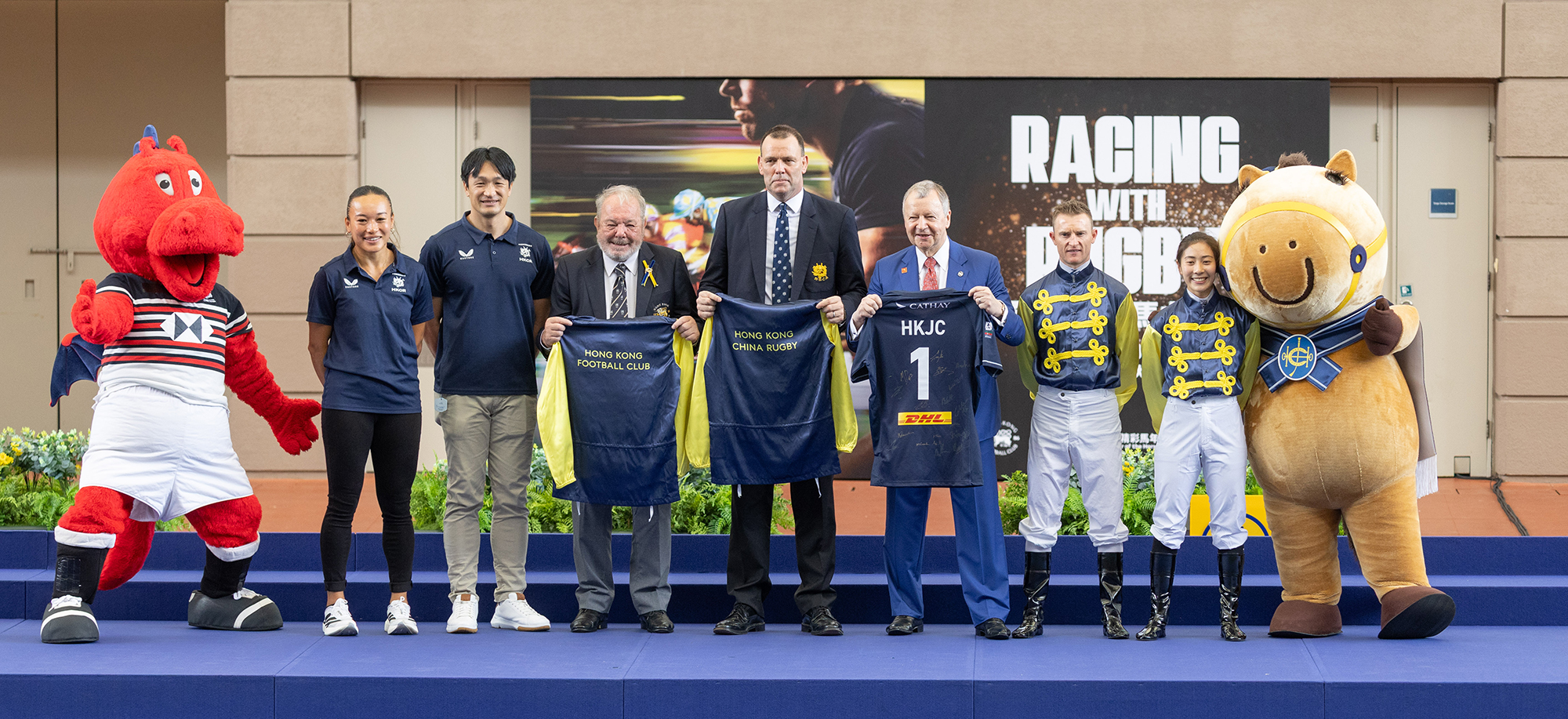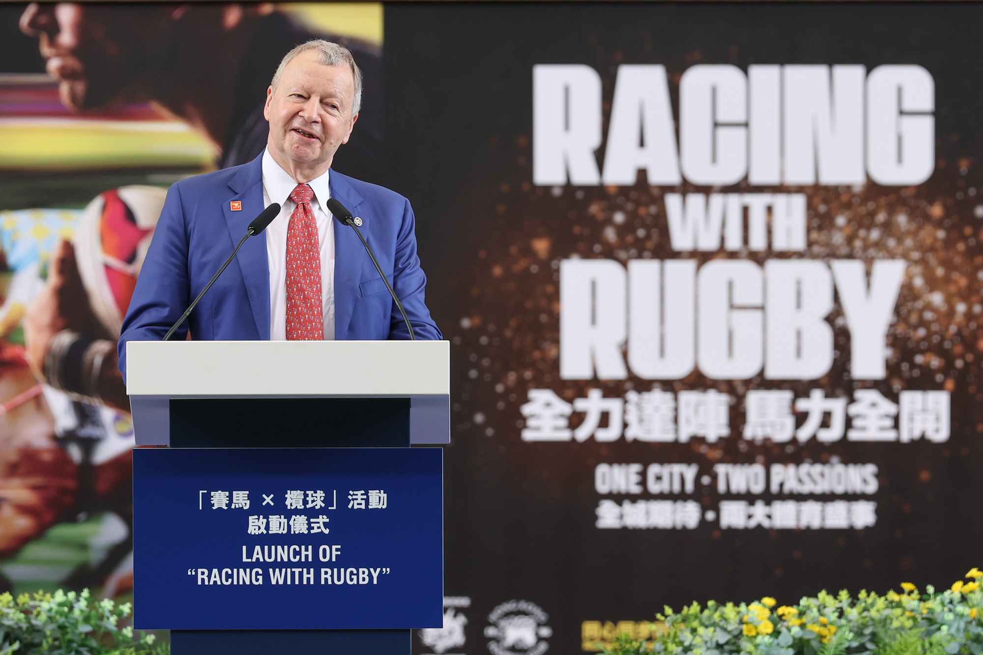 Speaking at the ceremony, HKJC Chief Executive Officer Winfried Engelbrecht-Bresges pointed out that racing and rugby are both dynamic sports that generate a great deal of excitement, bringing tourists to Hong Kong along with global attention. Sha Tin Racecourse, as the home of Hong Kong’s world-class racing and a year-round destination for racing tourism, was an ideal venue for the “Racing with Rugby” launch, he said. HKJC has welcomed a record 275,000 tourists so far this racing season, he noted, and thanked HKCR and the HKFC for their collaboration in this unique celebration of the city’s world-class sporting culture. He also said that, for the first time, the Happy Wednesday night races at Happy Valley Racecourse will coincide with the HKFC 10s on 15 April, allowing visitors to experience both racing and rugby in Happy Valley on the same day. He extended his best wishes to Hong Kong China rugby players.